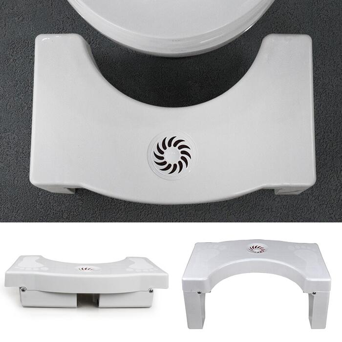 Product descriptionNormal seating position will choked your colon and make the release more difficult. When using our Squatting toilet stool, the colon is released by changing the angle from 90 degrees to 35 degrees. It allows you an easier and more effective elimination, and relieve you from constipation, hemorrhoids, bladder, IBS & Bowel disease etc.Our unique design includes anti-slip feet, which not only can prevent slips during use, but can also give you a foot massage. We also add anti-slip strips on the bottom of the squatting toilet stool, for a safer and more stable usage.When you need it, just pull it out and install your feet simply on the bathroom step stool and keep a healthy position. When not in use, it can be FOLDED UP for portable use and space saving.Specification:Folded Size: 40cm (L) x 25cm (W) x 10cm (H) ApproxUnfolded Size: 40cm (L) x 25cm (W) x 17.5cm (H) ApproxColour: WhiteMaterial: PlasticAnti Slip FeetWeight: 1000grms ApproxProduct name:Toilet Squat StoolUsage: Bathroom step stoolPackage Contents:1 X Foldable toilet stoolNote:1.Light shooting and different displays may cause the color of the item in the picture a little different from the real thing.2.The measurement allowed error is +/- 1-3cm.