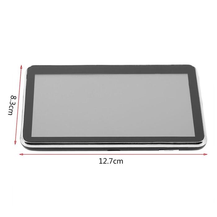 Features: Made from high quality material, it is reliable and durable for long time. High definition screen present clear images for you. Using advanced chip system ensure the smooth operation. User-friendly interface, easy to use. Comes with mounting holder, quick and easy to install in your car. Descriptions: Model : 560 CPU : Media Tek MT3351 GPS Module : High Sensitive GPS Receiver Memory Size : 800MB RAM – 8GB Internal Memory Display Screen : 5” TFT LCD Display,Resolution 480*272 USB: USB Client 2.0, MINI USB 5PIN socket SD Slot: Micro SD socket, MAX Micro SD card up to 32GB Audio: A: Built-in 1W/ 8 ohm B: Stereo track: 0.25W/CHANEL, single track 8 ohm/1W FM: FM transmitter (76.0MHz -108MHz) Transfer the GPS sound to Car,not FM Radio Bluetooth&AV-IN : NO Battery : Built–in Li-ion Rechargeable 1500mAh Working Time : About 1 hour Charging Time : 2-3 hours,Sometimes can only charge to 99% Charging Socket : 12V DC socket Car Charger : 12-36V/1.5A Temperature Range : Operation temperature: -10 °C to 60 °C Saving temperature: 0 °C to 60 °C Specifications: Map: America Video Playing Software: Support ASF,AVI,MP4,WMV,MPG,DAT,MPEG,3GP Audio Playing Software: Support WMA9, MP3 and WAV format Photo Format: Support JPG, GIF, BMP ,PNG format E-book: Support TXT format System Languages: English, Finnish, France, Germany, Hungarian,Italian, Polish, Portugal, Romana, Russian Slovencina, Spainish Material: plastic Size: 127mm x83mm x12mm Color: black Package included: 1 x GPS Navigation Device 1 x Mount 1 x Car Charger 1 x USB Cable 1 x Back Braket 1 x User Manual Notes: 1.Due to the difference between different monitors,the picture may not reflect the actual color of the item. We guarantee the style is the same as shown in the pictures. 2.Due to the manual measurement and different measurement methods, please allow 1-3cm deviation.Thanks!