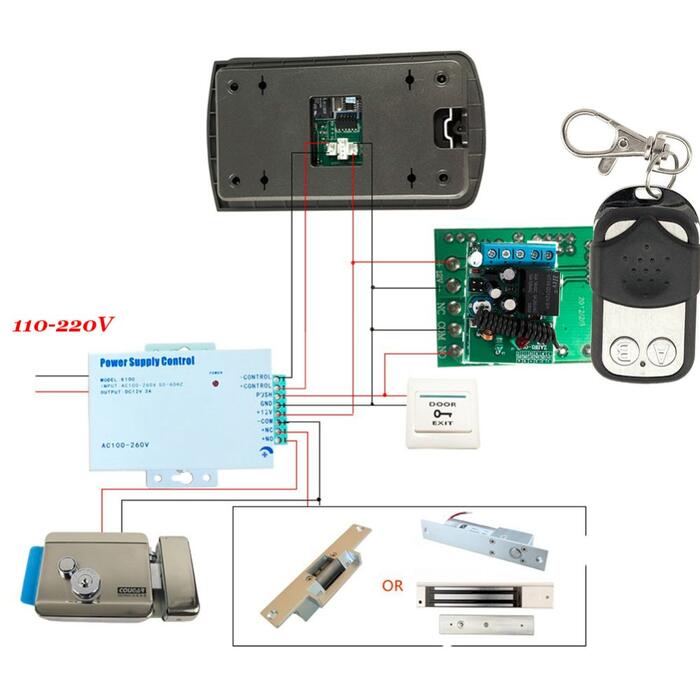 Comes with 10 RFID keyfobs, a push release button switch.