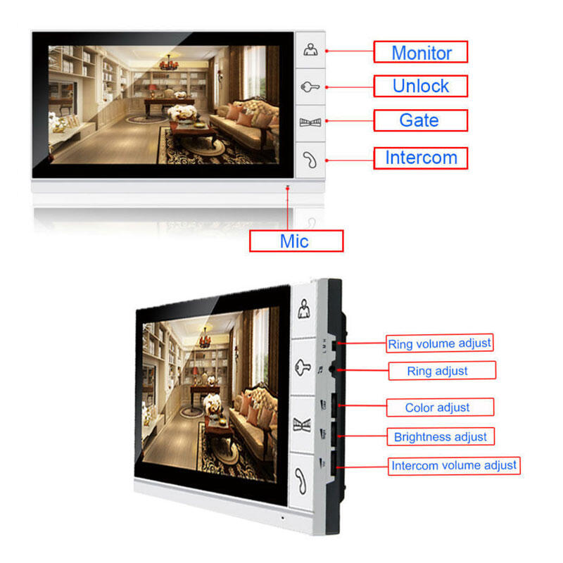 New 7 inch LCD Color Screen for Video Door Phone Intercom System White Panel Monitor Unlock Monitor Intercom