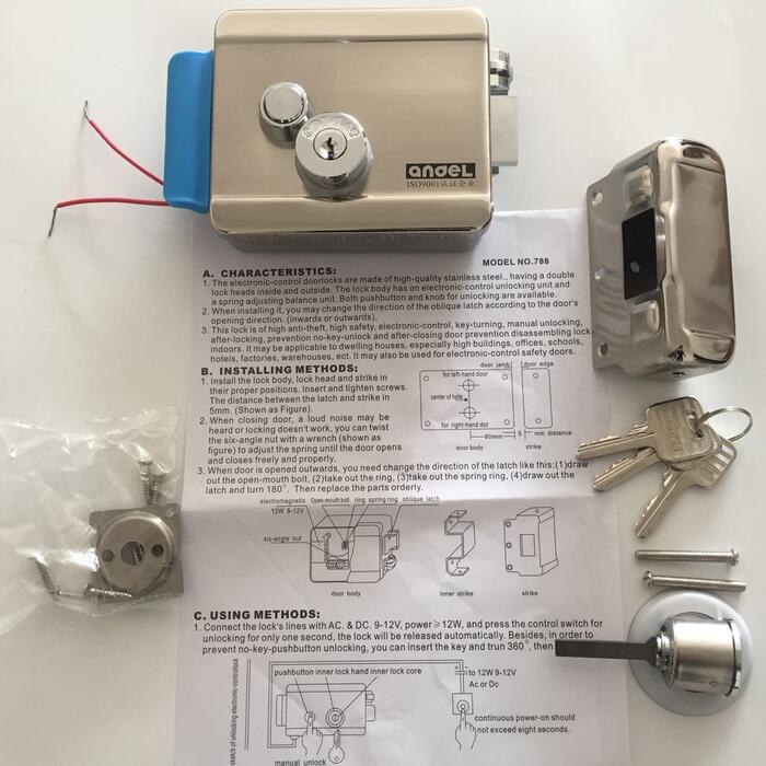 In order to satisfy most of the customers, a complete doorphone system with 10pcs RFID keyfobs, a push release button, a electric Electric Control Door Lock, a remote control and a power supply have been launched. With this full kit, it will be more convenient to build the full access control system for the home security. You can open the door lock either from indoor or outdoor through several methods.