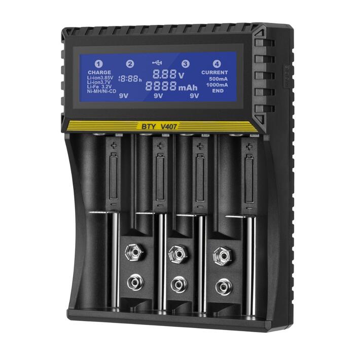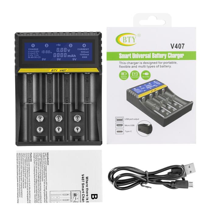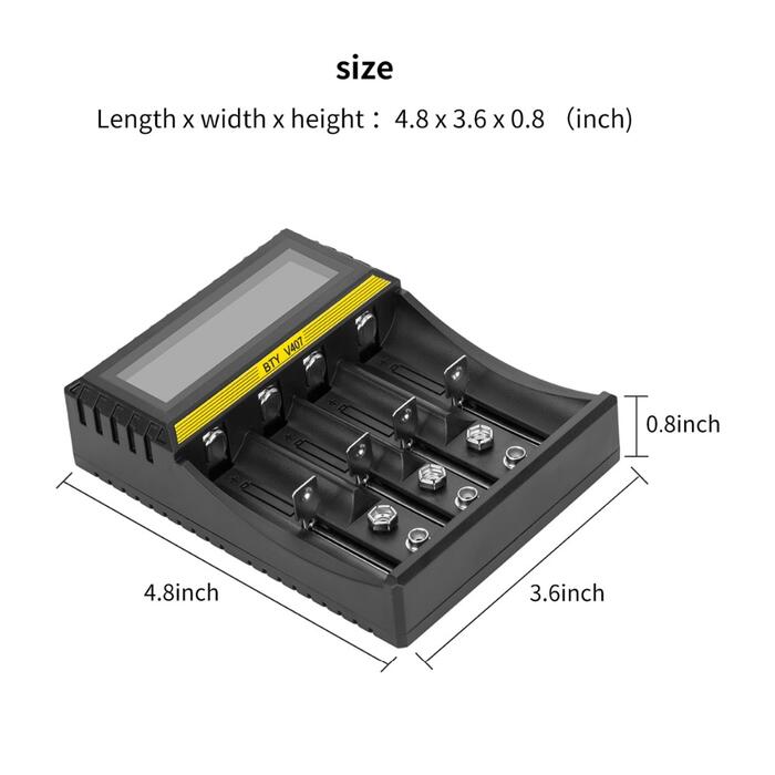 V407 is a smart charger designed byBTYteam, compatible with almost all type of rechargeable batteries like Li-ion/IMR/INR/ICR/Ni-MH/Ni-Cd/LiFePO4 batteries, as well as a high grade performance, With a large digital LCD display, easily to understand battery charging parameters and processes.