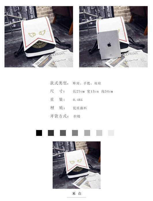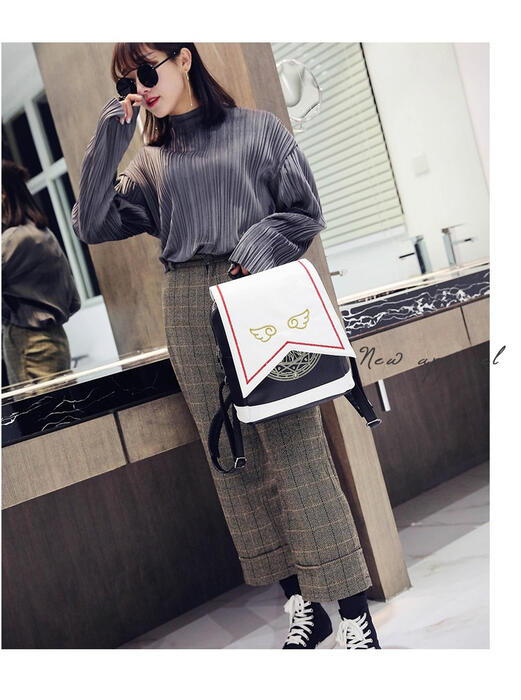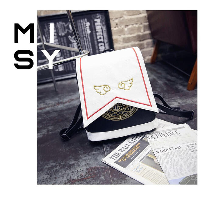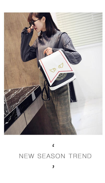 Anime Card Captor SAKURA Kawaii Small Backpack Cardcaptor Sakura Printing School Bags Lolita Women Backpack with Angel Wings