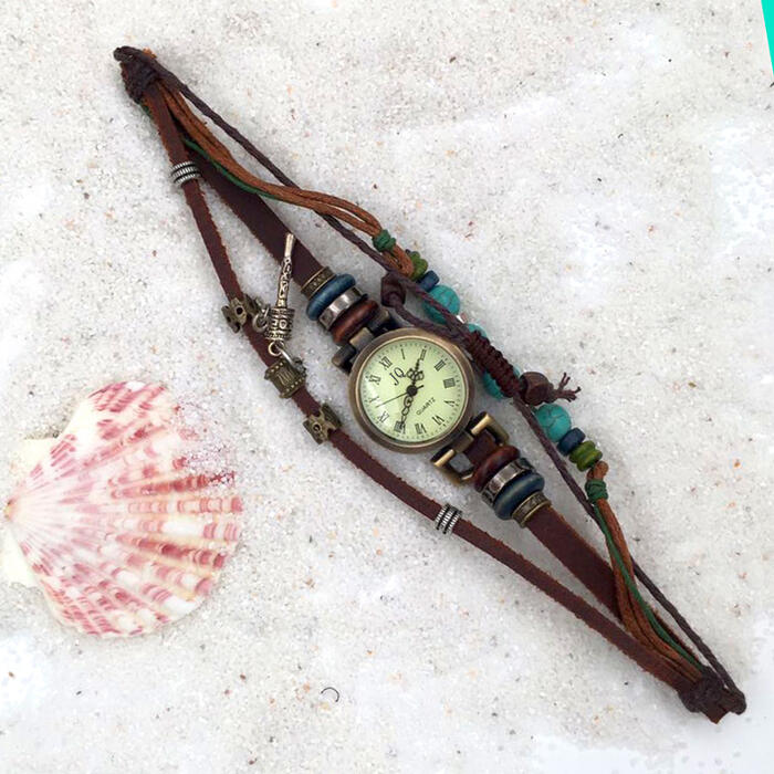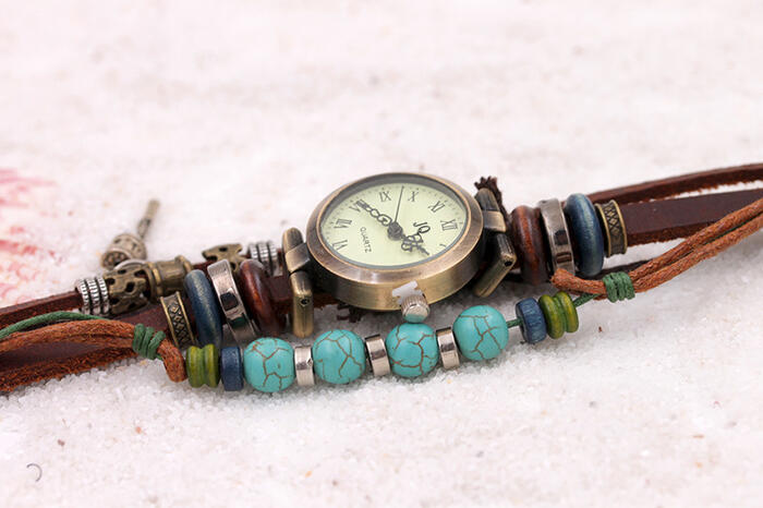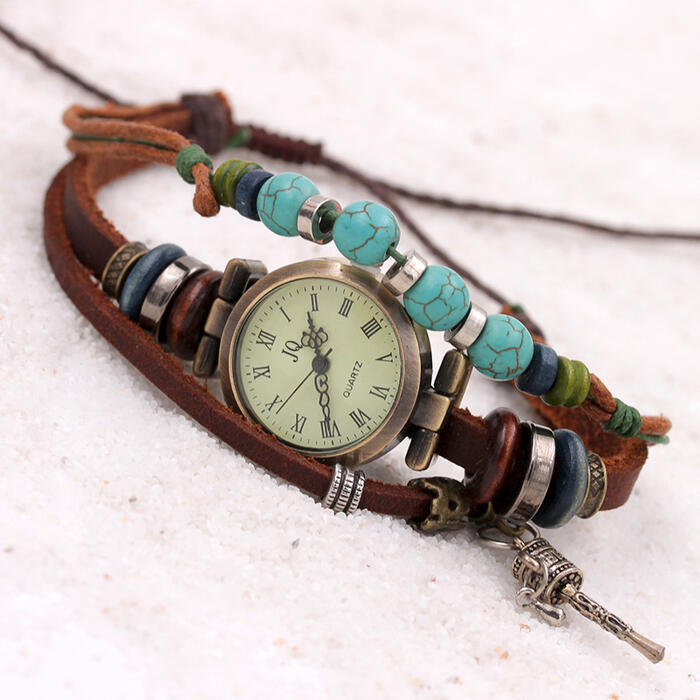1 review for Hesiod Vintage Blue Stone Leather Bracelet Watch for Women Adjustable