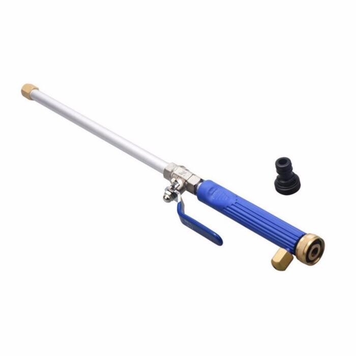 Description This high pressure washer can easily wash your car, truck, camper, or boat and tackle dirty wheels and rims. This item can clean the mud and grime from your car tires and belly and wash off the leaves and grass from your pathway. It can help you clean the tiled rook without using ladder and allows you to clean second story windows from the ground. You can also use it to clean partio umbrellas, chairs and swimming pools. A versatile high pressure water sprayer for car washing, garden watering, outdoor sidewalk cleaning, etc. Features – Color: Blue – Material: Aluminum alloy (Tube), Copper (Ball valve), TPR (Handle) – Size: 46.5 x 2.6 x 2.6 cm/ 18.3 x 1.02 inch (L x W x H) – Spraying distance: 15m – Fits all ¾” standard garden hoses, and other sizes with standard 1″ female hose bib connectors, or may be used with a powered pressure washer system using the included adapter. – 2 nozzle streams. Jet spray tip and fan spray tip are included, which allows you make powerful jet stream or a gentle spray for different requirements. – Hose connector included. Female threaded standard garden hose to ½” quick connect hose coupler. – Easily wash your car, truck, camper, or boat and tackle dirty wheels and rims. – Suitable for car washing, plant watering, agricultural irrigating, household cleaning, etc. – Note: The pressure largely depends on the water pressure in your water system and hose, the spray nozzle only boosts that pressure to a limited degree.