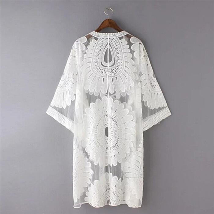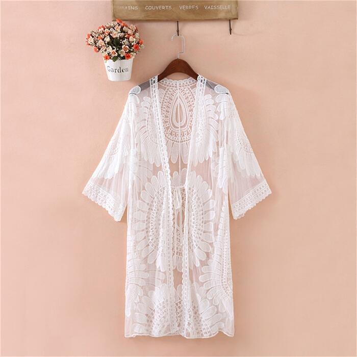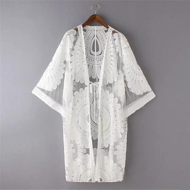Sexy mesh long cardigan; beach maxi-dress; sunscreen blouses Popular elements: mesh,belt, halter, see-through,beach holidays, sun protection