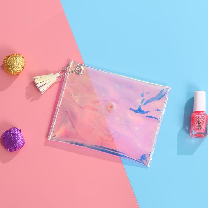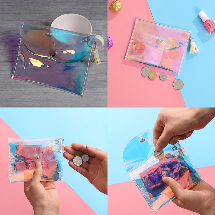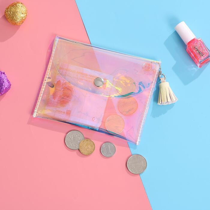 Women Colorful Tassel Makeup Bag Holographic Clutch Laser Cosmetic Bag Transparent Bag Mini Purse Wallet Fashion New