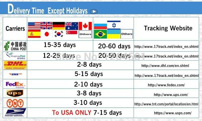 We will be able to get them shipped via DHL, EMS, HK AIR Mail upon your choice. Or we can offer you the most economical and safest method. Our goal is to get your order reach you in best way you like.