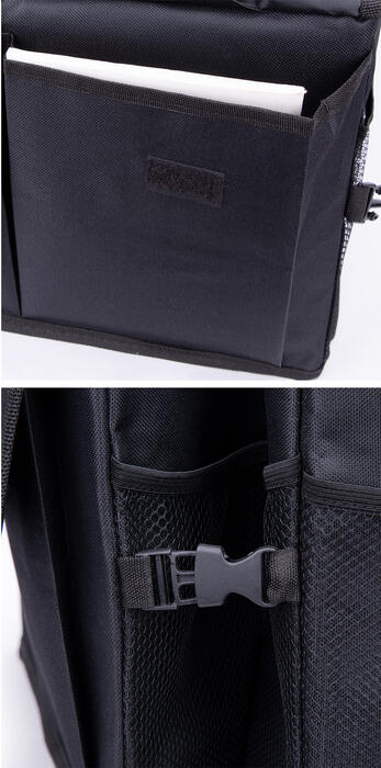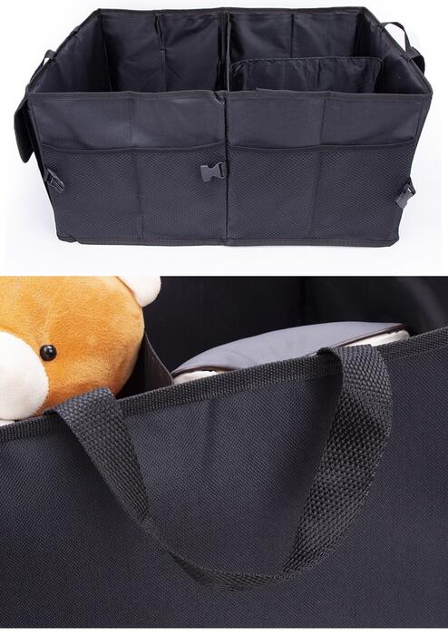 1. 600D oxford cloth, durable, water resistant, easy to clean and longer lifetime. 2. Three separated compartments with pockets on two sides, optimize the space to store more stuff. 3. Foldable, 2 side handles, easy to carry.