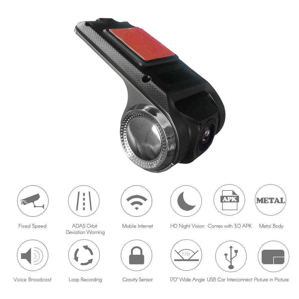 Features: Lens Rotation Angle: Support manual up and down 90°resolution; 5G HD wide-angle lens. Image and Photo Resolution: 12M / 10M / 8M / 5M. Video Frame Rate: 1080P/30fps; 720P/30fps. External Storage (for SD or TF Card): Support TF Card Capacity Up to 32GB (NOT Included). Adopting H62 sensing chip, and built-in memory (NAND or NOR) 32MB. Video compression method: MJPEG; picture format: JPG and support GPS. Standard Accessories: USB Power Cord / Glue for Bracket. This 1080P Dash Cam is suitable for Android 4.4 or above. Existing Languages: English/ Traditional Chinese/ Simplified Chinese/ Japanese/ French/ Russian. Notes: 1. This product only supports high speed cards. Please use CLASS10 TF card. 2. Format the TF card in the APK when using it for the first time. 3. TF card should be inserted in the case of power failure, does not insert or remove the TF card in the running state. 4. This product does not support mobile OTG connections. Specifications: Optical Zoom: Not Supported Microphone: Built-In Rear Camera: Not Supported Audio Coding Method: PCM Video Recording Reference: 11 Minutes / 1GB Static / Dynamic Pixels: 12MP/ 2MP Number of Cameras: 1 Focal Length: F = 2.45 AV-OUT: Not Supported Video Encoding format: AVI Webcam: Not Supported Internal Cache: 1G DDR Other Fixed Equipment: None AV-IN: Not Supported SPI Flash USB: Support PC Function: Support Speaker: Built-In Aperture: F=2.4 LED Fill Light: Not Supported Photosensitive Area: 1/3 HDMI: Not Supported Power Supply: 5V Vehicle Mounting Equipment: Adhesive FOV: 150° Solution: Ling tong 6248 Maximum Power Consumption of This Unit: 280mah Digital Zoom: Not Supported LED Night Vision Infrared Light: Not Supported Size: 90*50*30mm/3.54*1.97*1.18″ Weight: 186g Package Include: 1 * Car DVR 1 * USB Power Cord