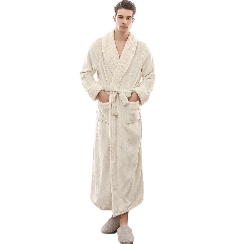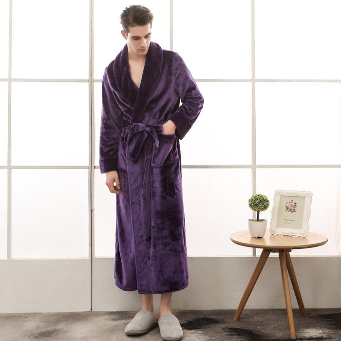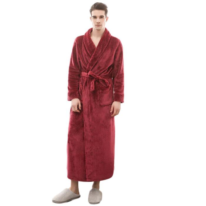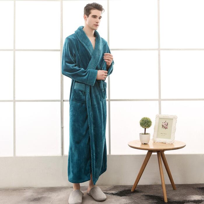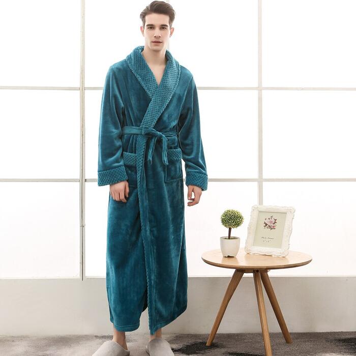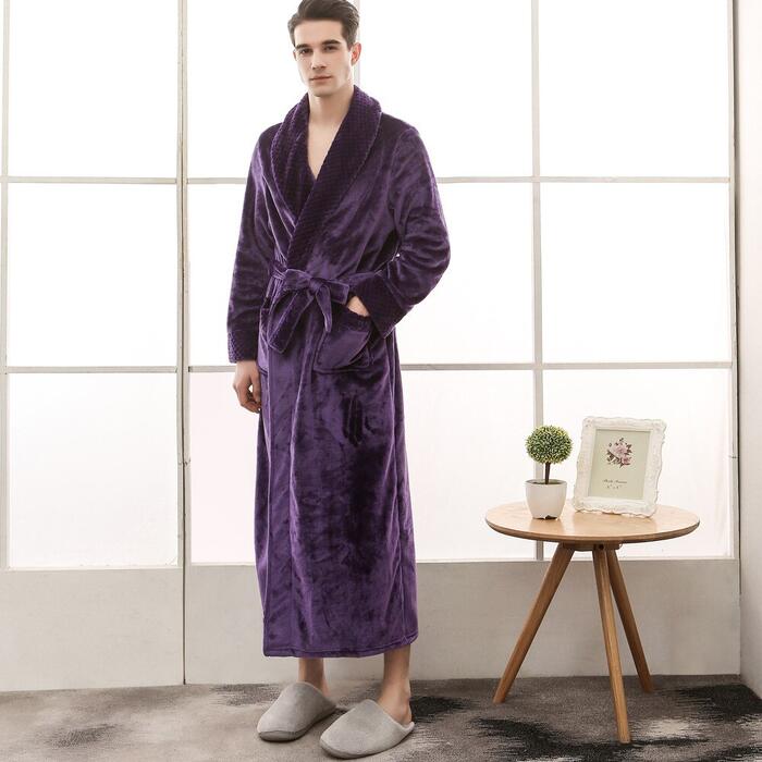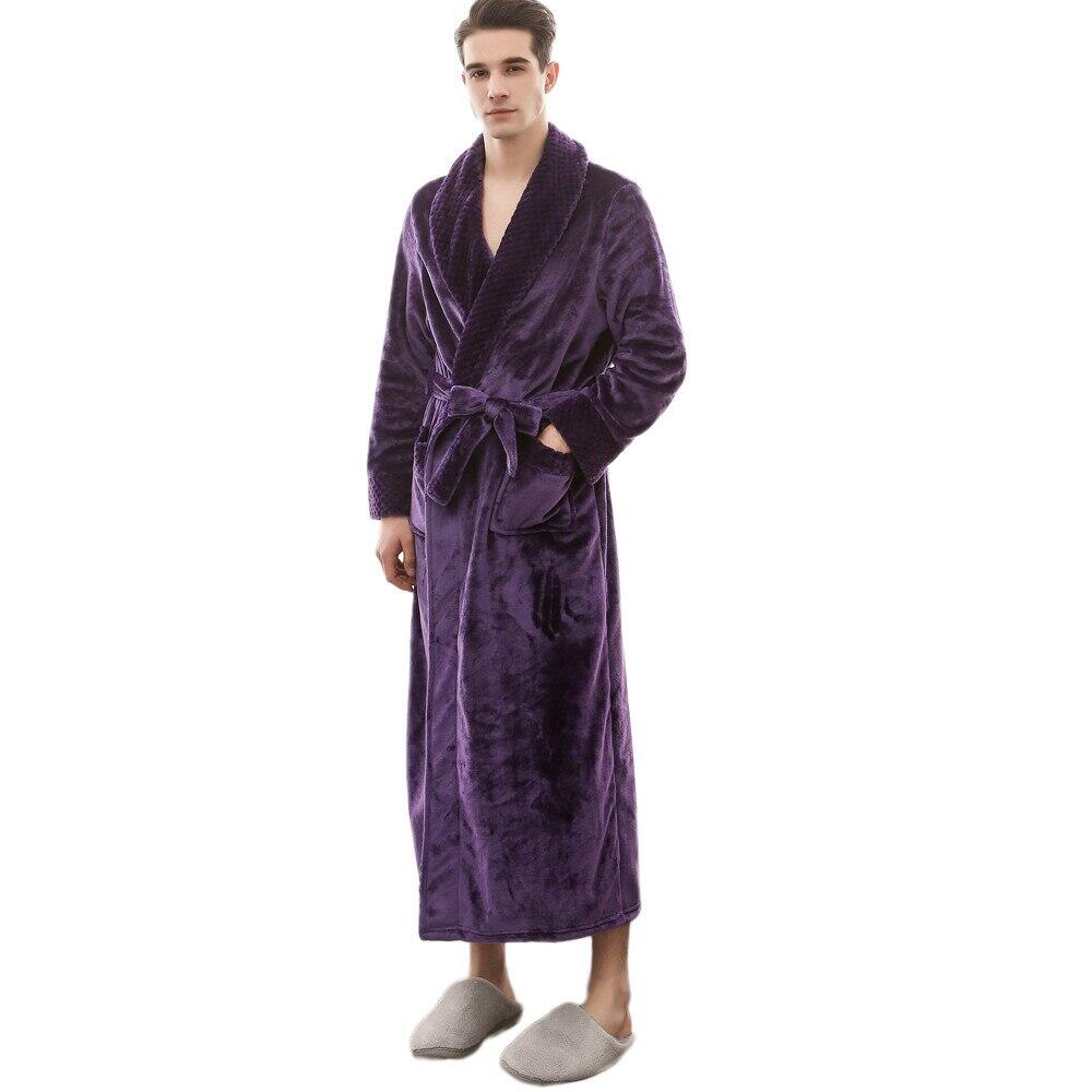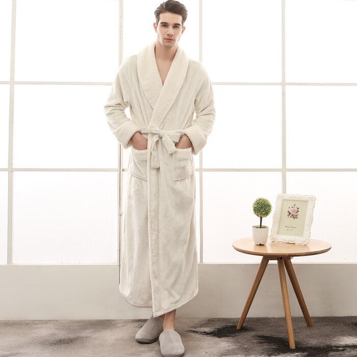 2018 Newly concise style Men s Winter Lengthened Coralline Plush Shawl Bathrobe Long Sleeved Robe Coat