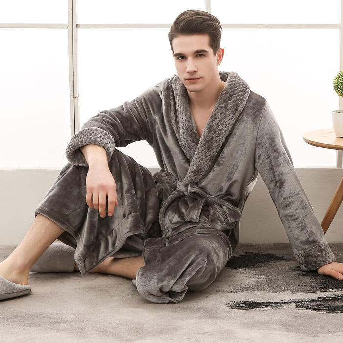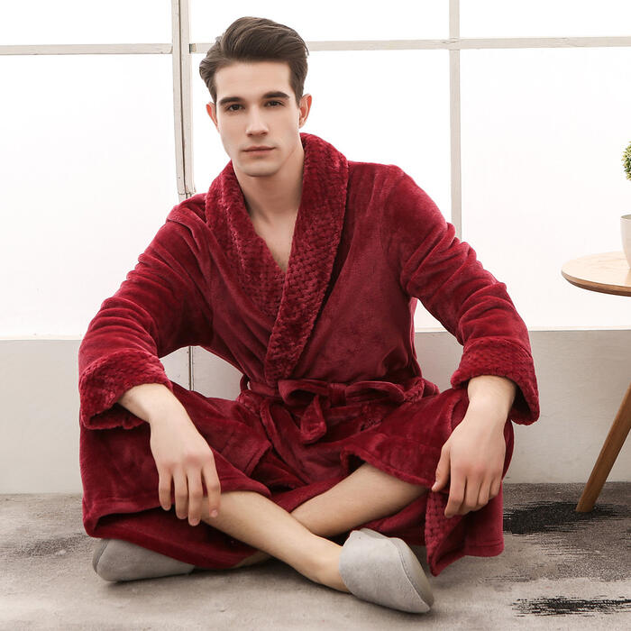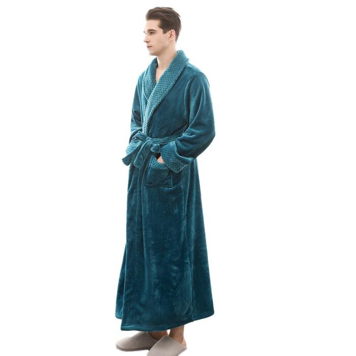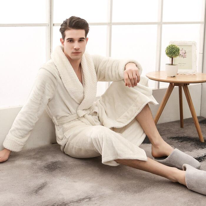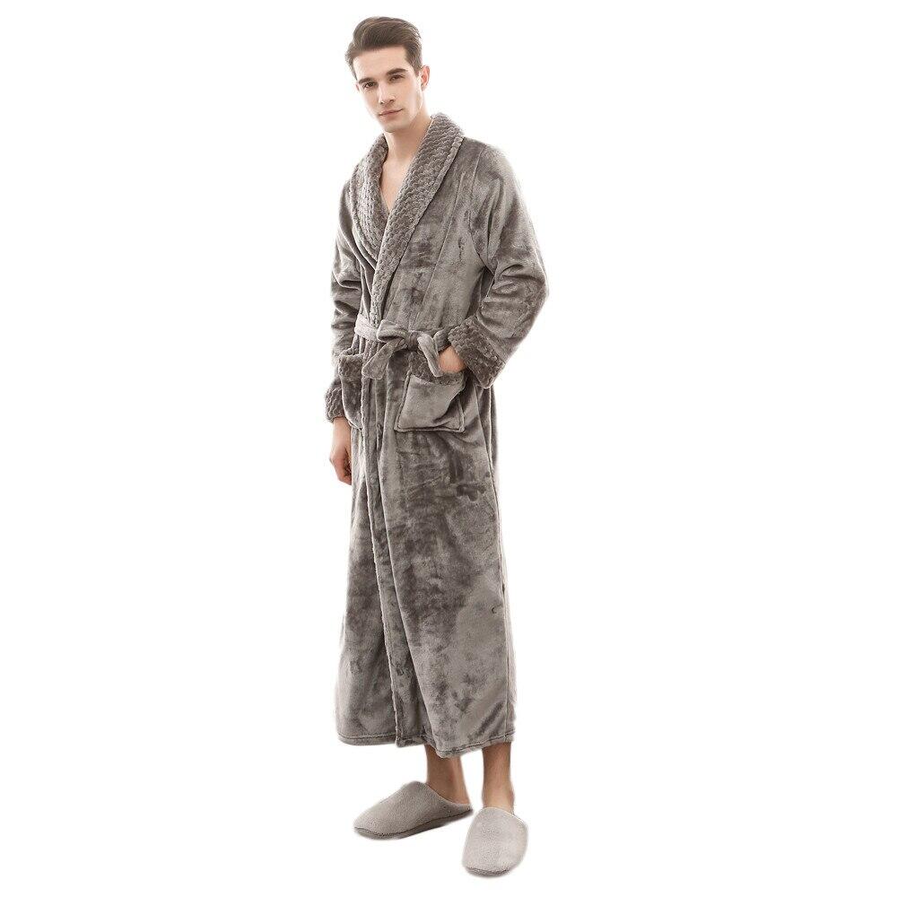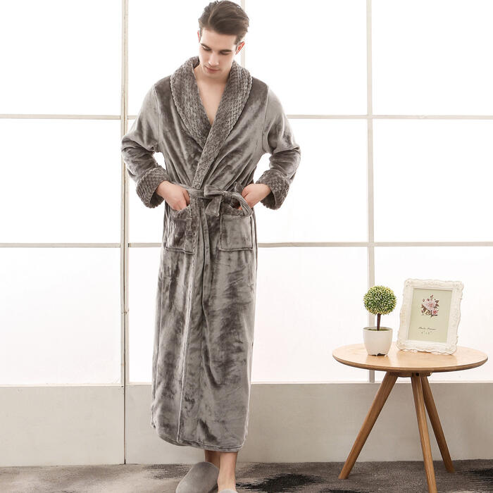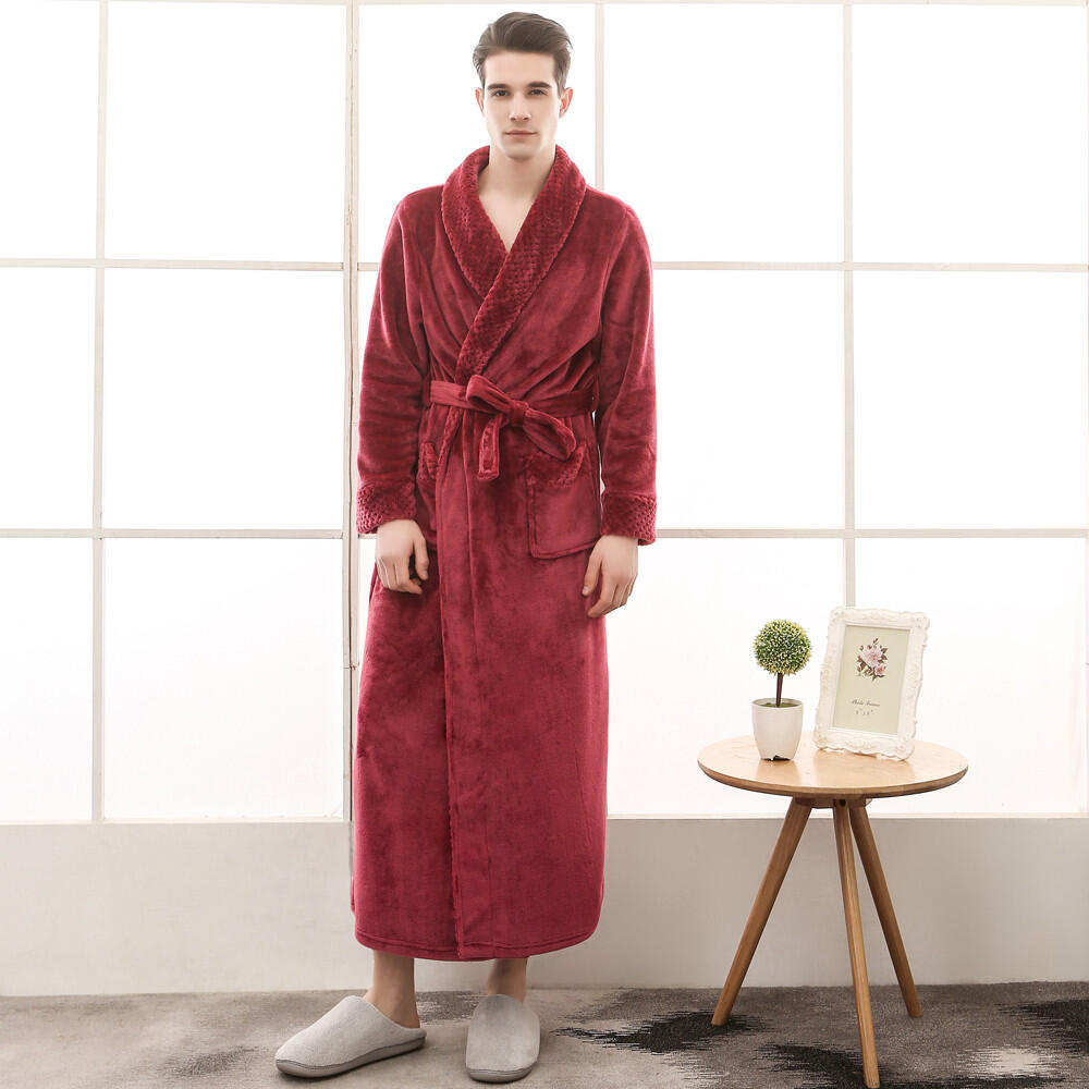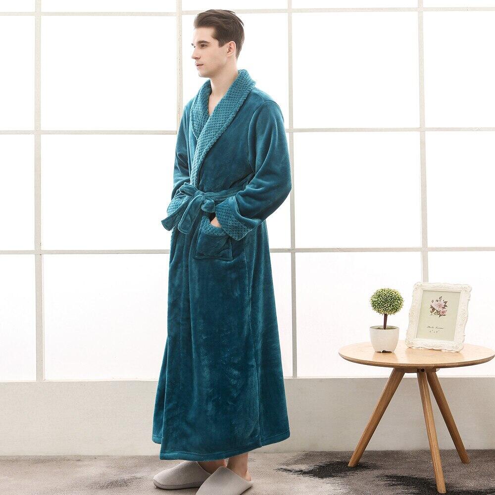 2018 Newly concise style Men s Winter Lengthened Coralline Plush Shawl Bathrobe Long Sleeved Robe Coat