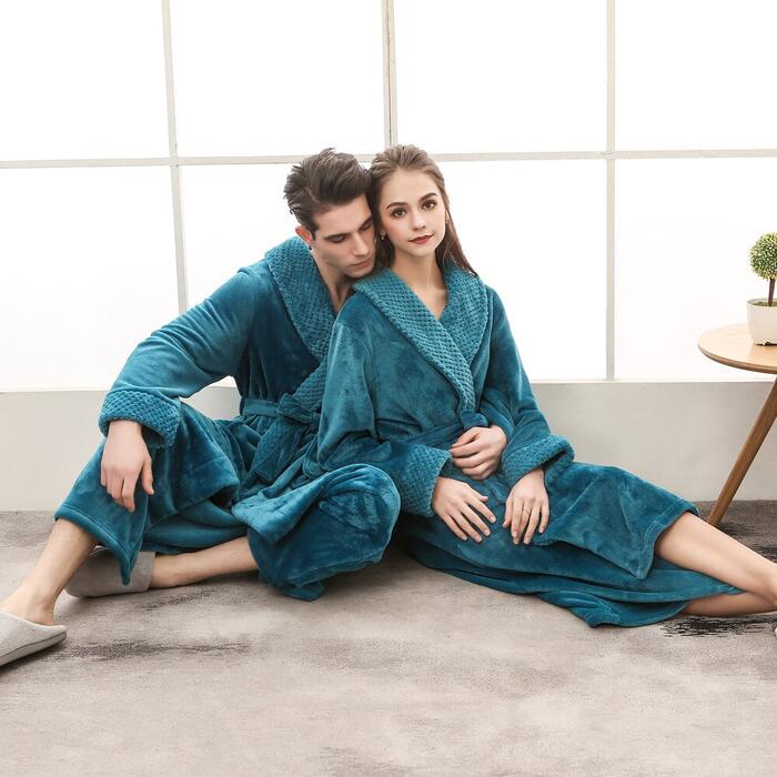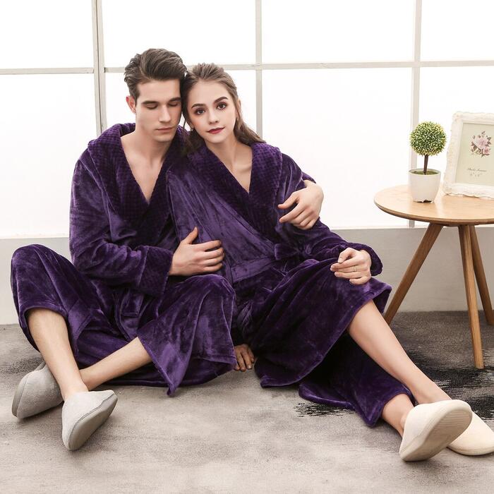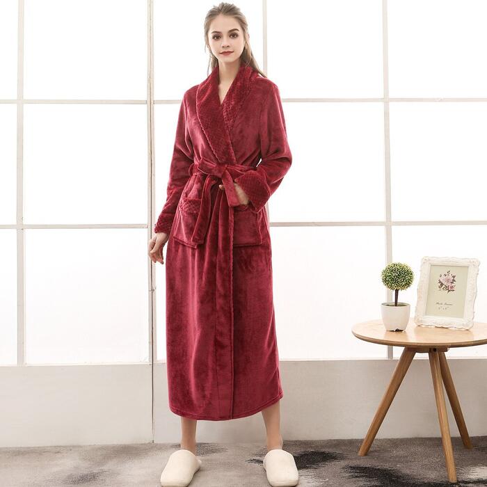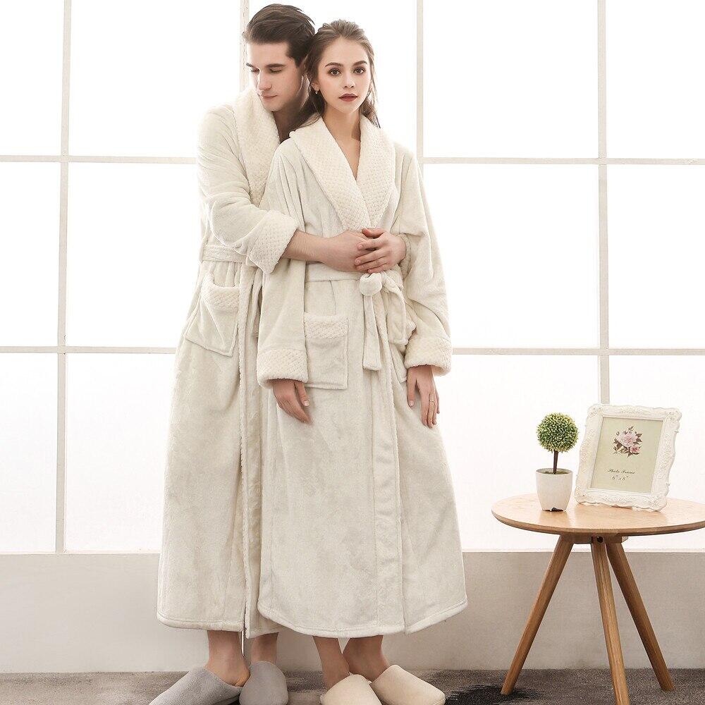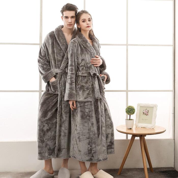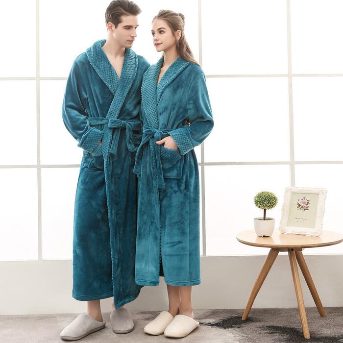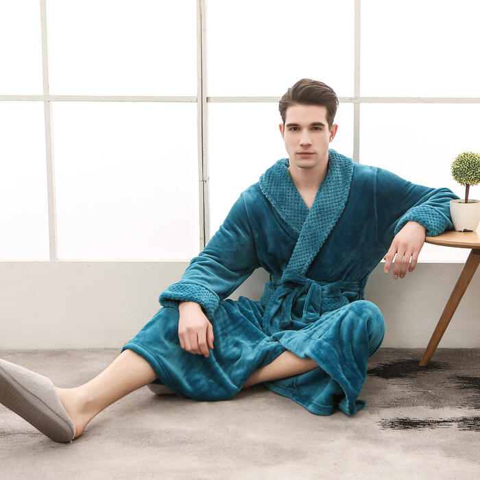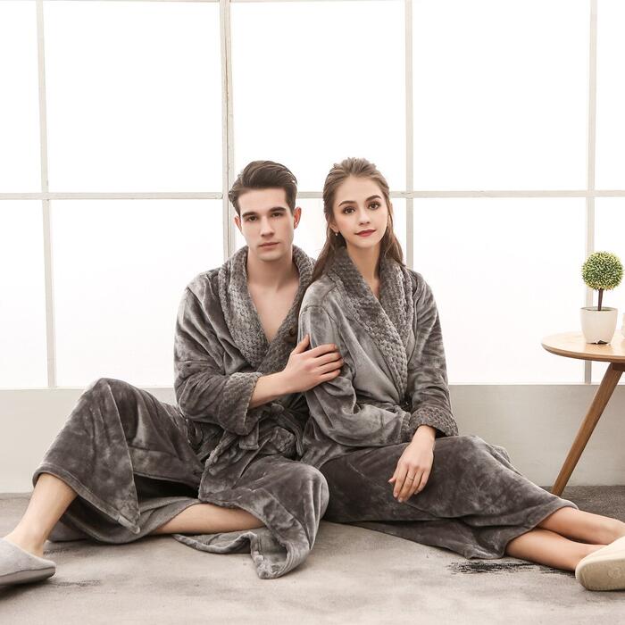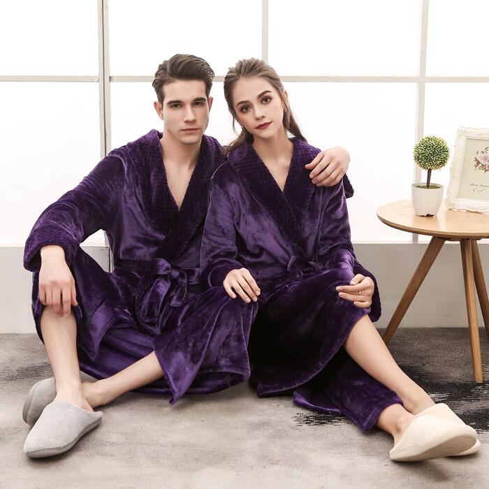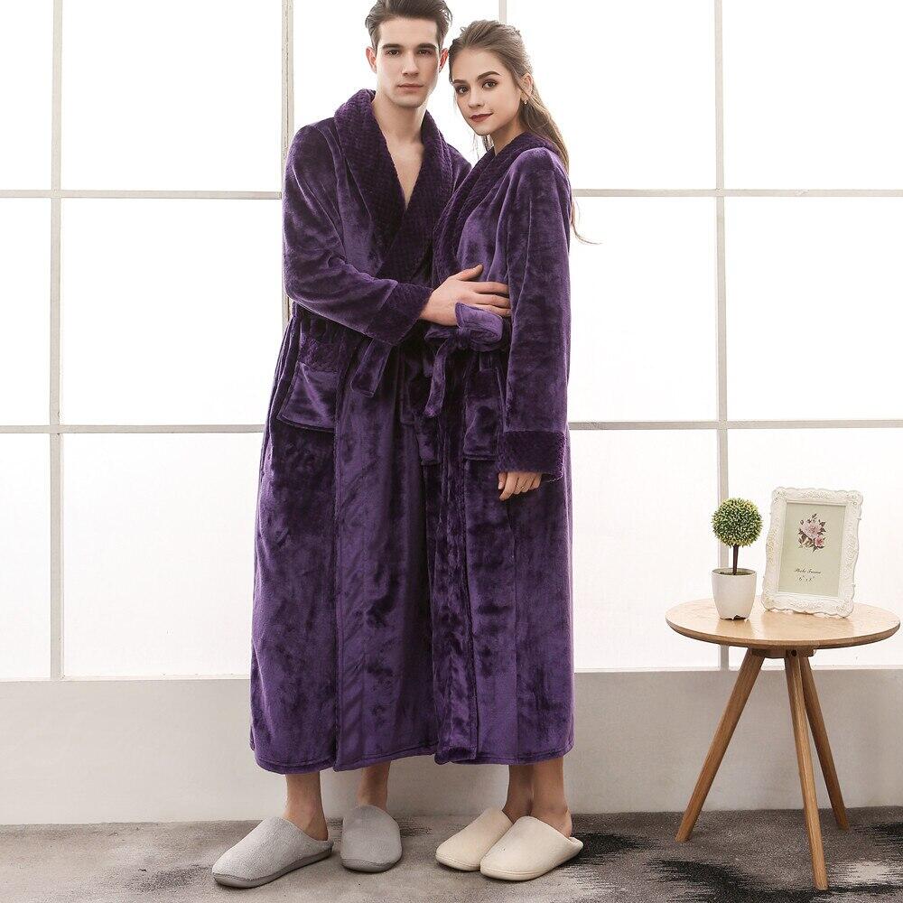 2018 Newly concise style Men s Winter Lengthened Coralline Plush Shawl Bathrobe Long Sleeved Robe Coat