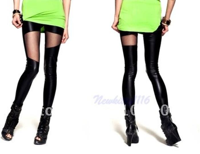 Free Shipping 2PCS/LOT Women Slim Asymmetric Sheer Mesh Panel Black Stretch Leggings Tights Pants