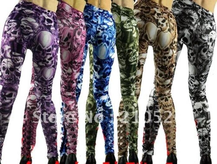 Free Shipping New Fashion Women Sexy Skull Printed Personalized Stretch Leggings Tight Pants Hot Sell