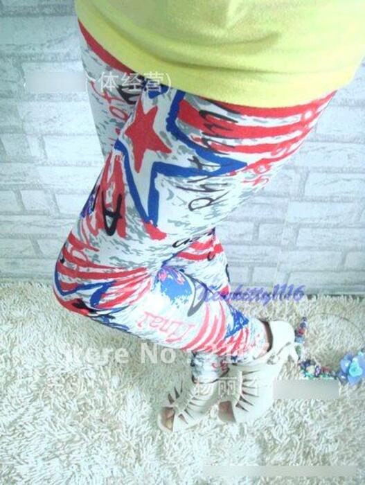 Free Shipping 2PCS/LOT Fashion Women Sexy Irregular Stripe Star Flag Printed Leggings Tight Pants