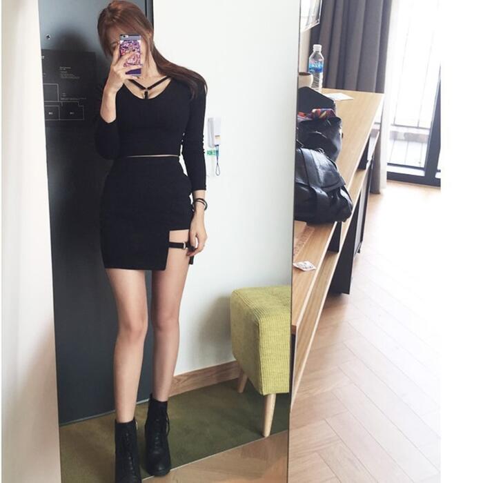 Product Name:Korean Style Black Package Hip Skirts Gap Irregular Hem Pencil Micro Mini Skirt