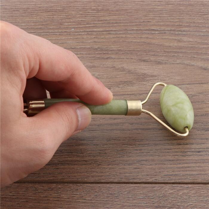 Massage the eye,with a small jade roll,from the inside outward,clockwise massage.You can reduce eye lines.Can also prevent wrinkles.