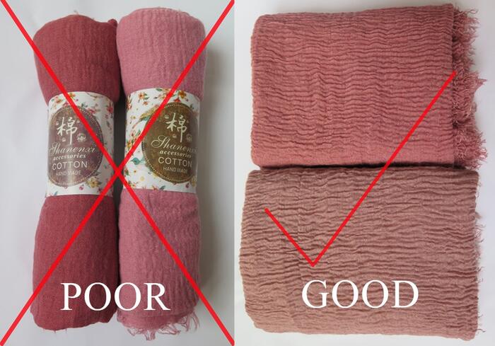 Our bubble scarves are higher quality than others (texture,touchness,elasticity), without any defect of white spots/lines.