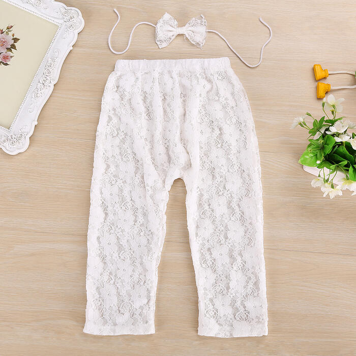 HomeToys Kids BabyBaby ClothingBaby PantsNew Arrival Little Baby Photographic Props Clothing Lovely Lace Pants with Headwear White Hollow Style Pants for Newborn Babys