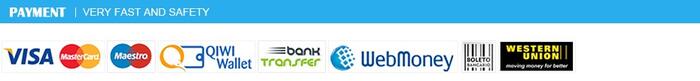 Currently, We accept the payment by using Visa, MasterCard, Maestro debit card, QIWI, WebMoney, Boleto, Western Union, and Bank transfer. More payment options will be available on later on.