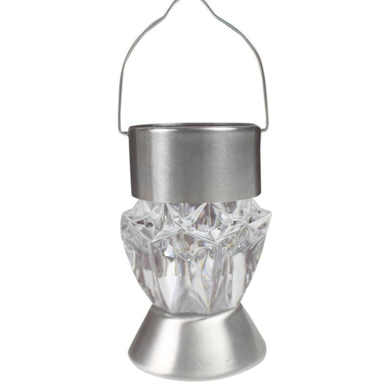 Diamond Bulb dangles from a clip that easily attaches to a patio umbrella or awning.