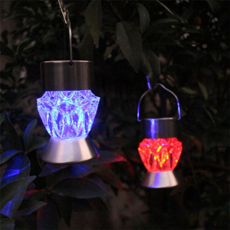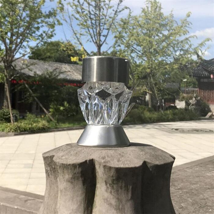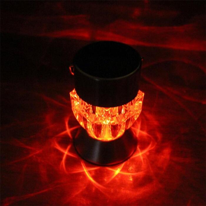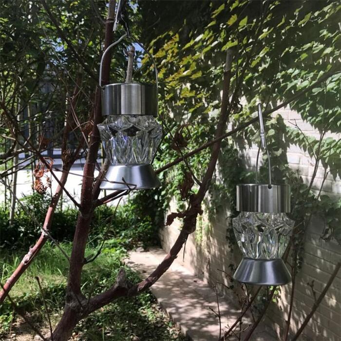 Recharged by solar panels under sun light, can lights up about 6-10 hours if fully charged.