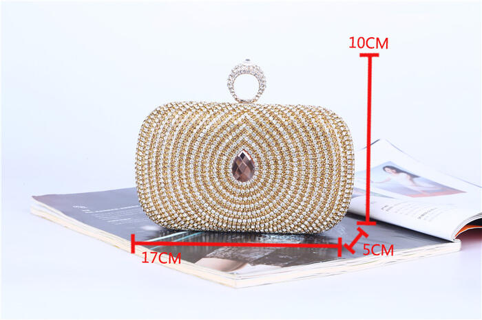 HomeBags & ShoesWomens Luggage BagsEvening BagsParty Evening Bag Ladies Diamonds Rhinestone Hasp Ring Elegant Evening Bag Party Wedding Gold Handbag Clutches Handbag 8130