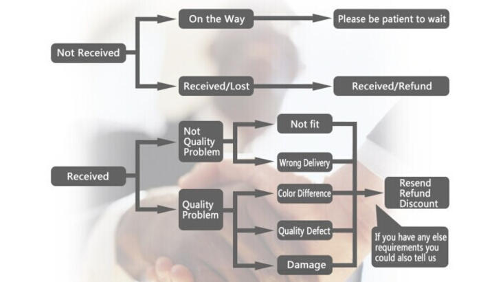 1.If you have any need or problem,please let us know, you can contact us with TradeManager.email.message,we always at here! 2.If you are not satisfied with the quality of your purchase,you can return or exchange your items within 30 days from the delivered date. Request:Return fee is paid by buyer.