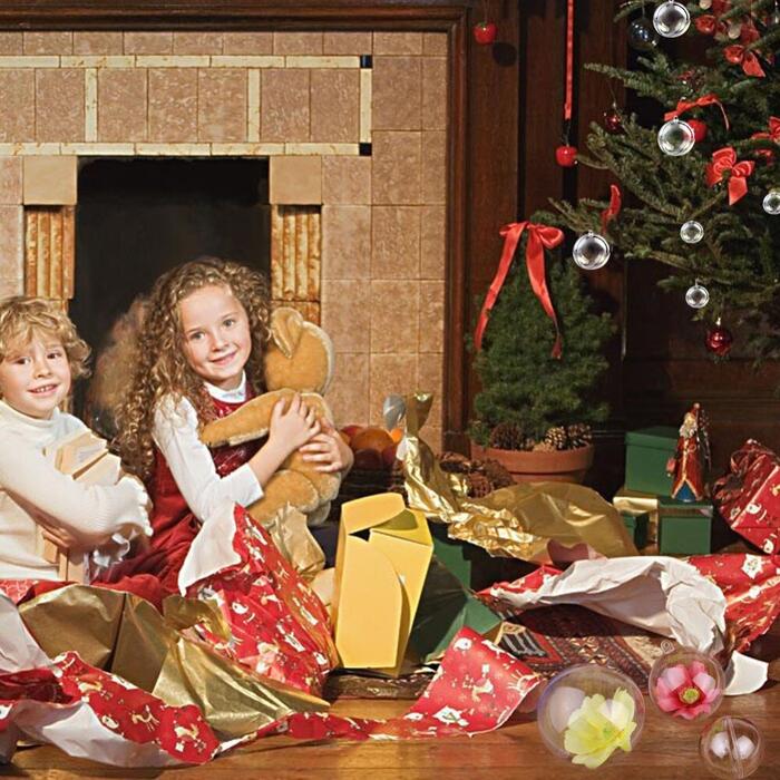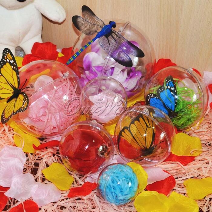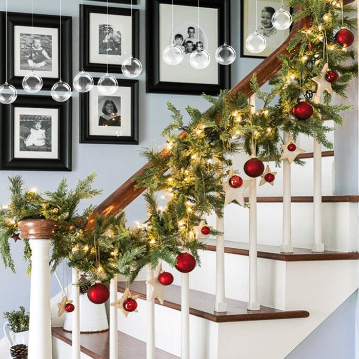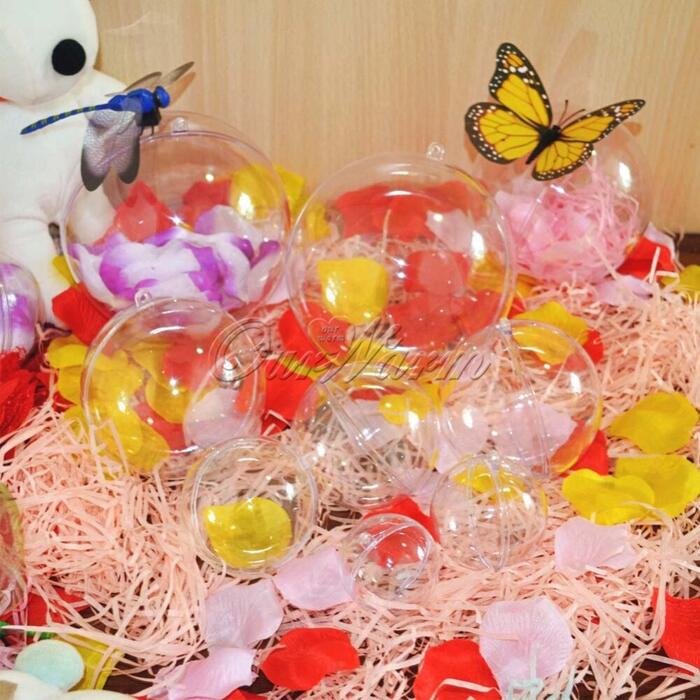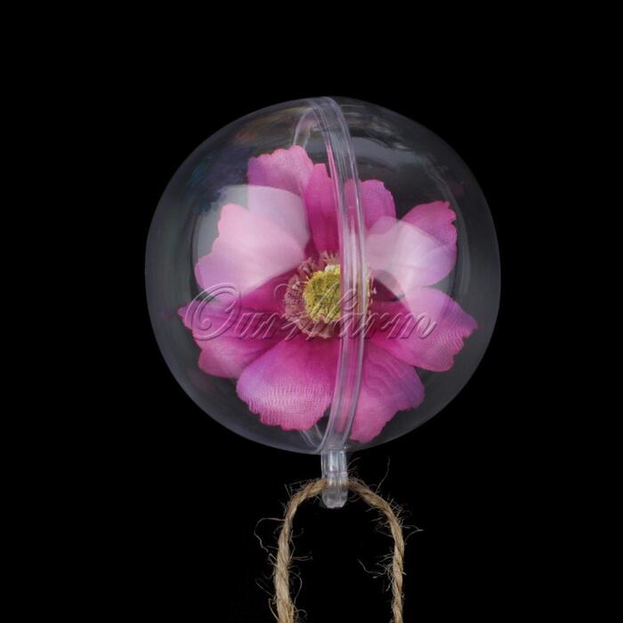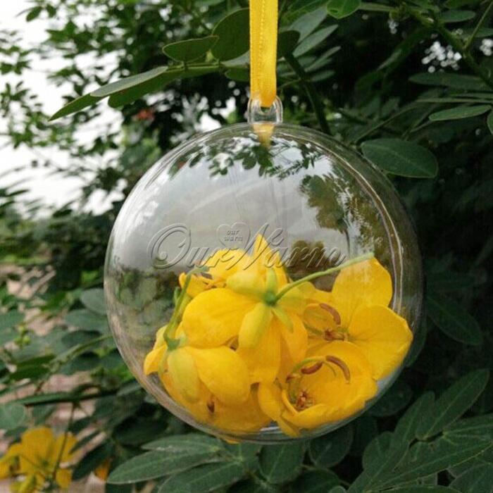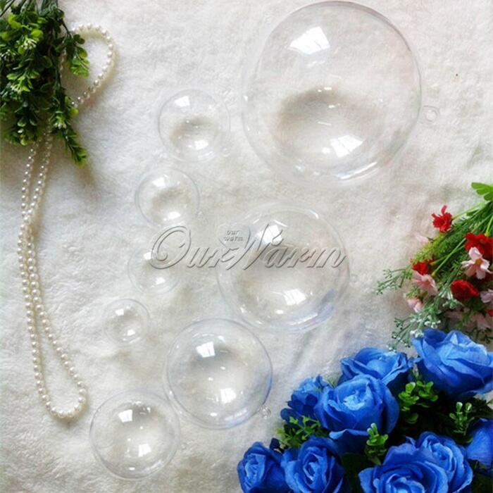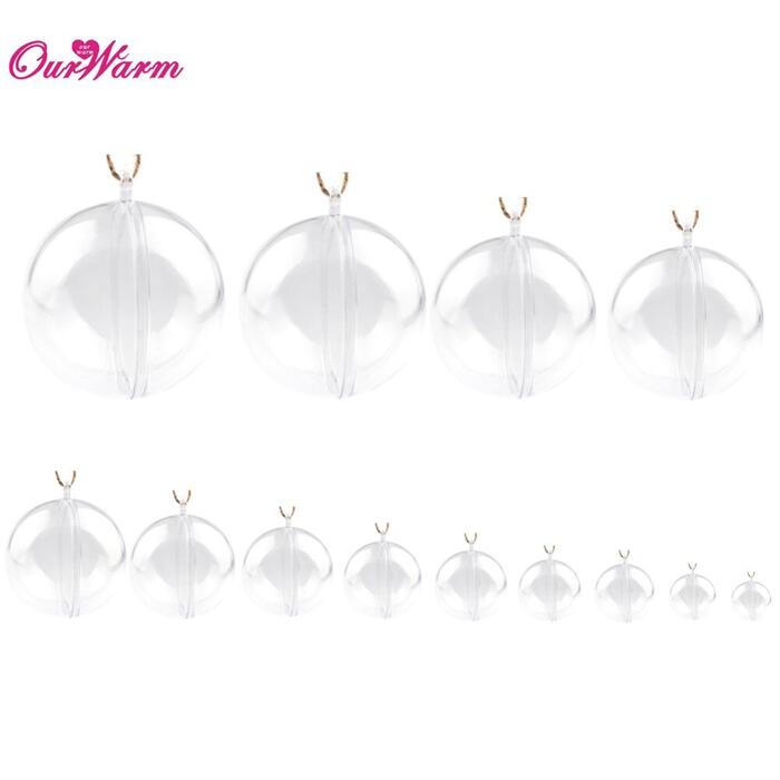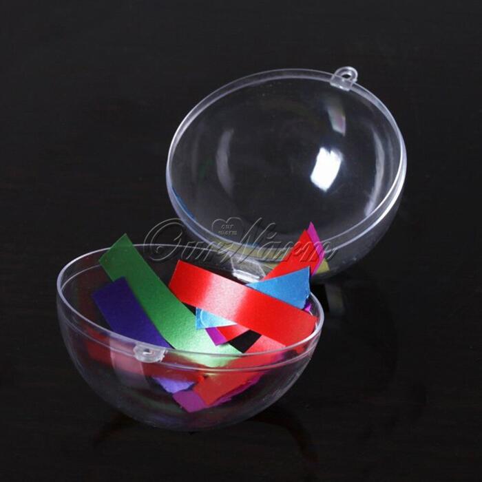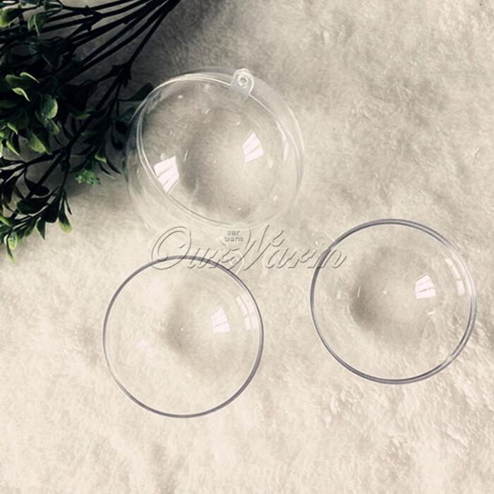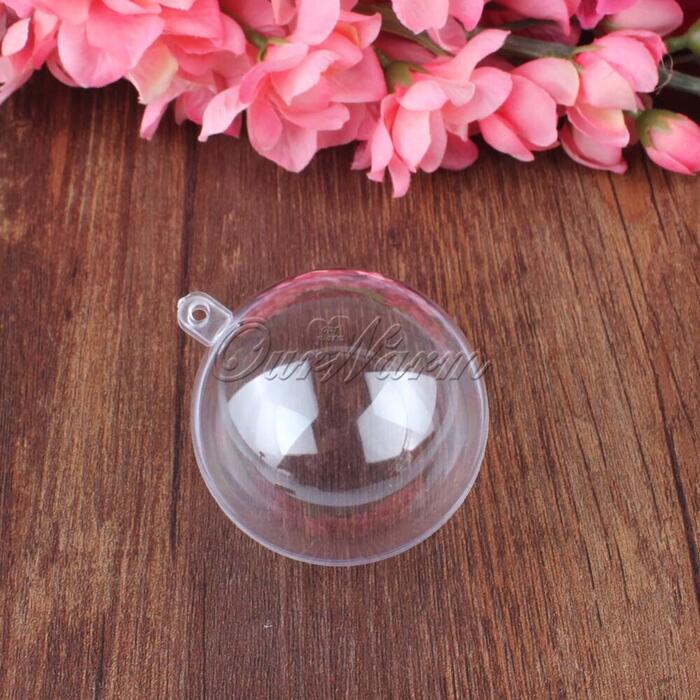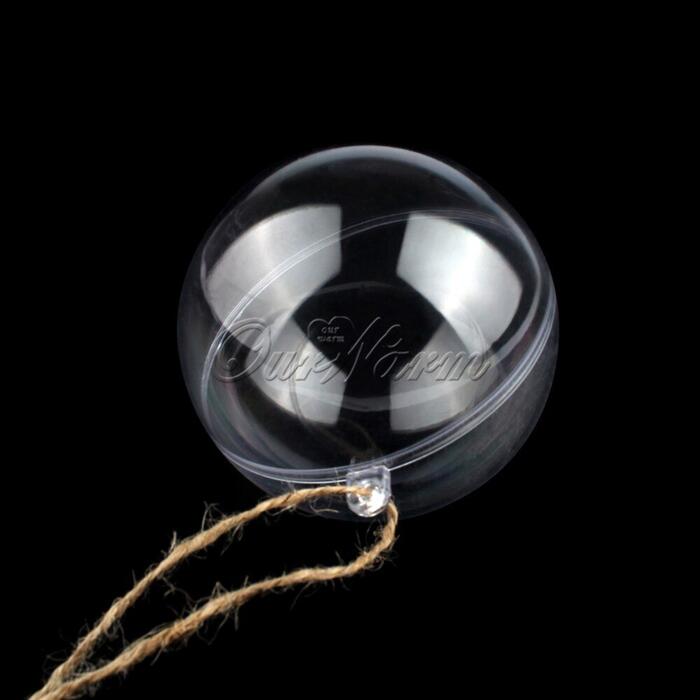 3. These clear plastic ornaments come in two pieces, attach the two together with thread a piece of wire or string through the hanging loop on the top.