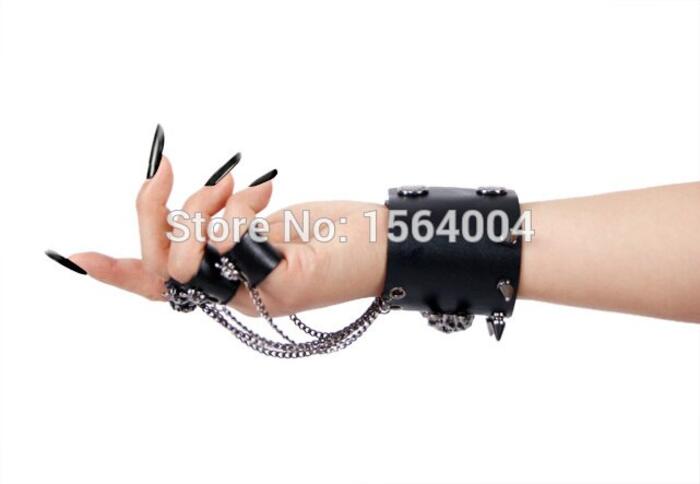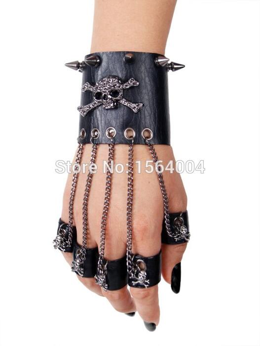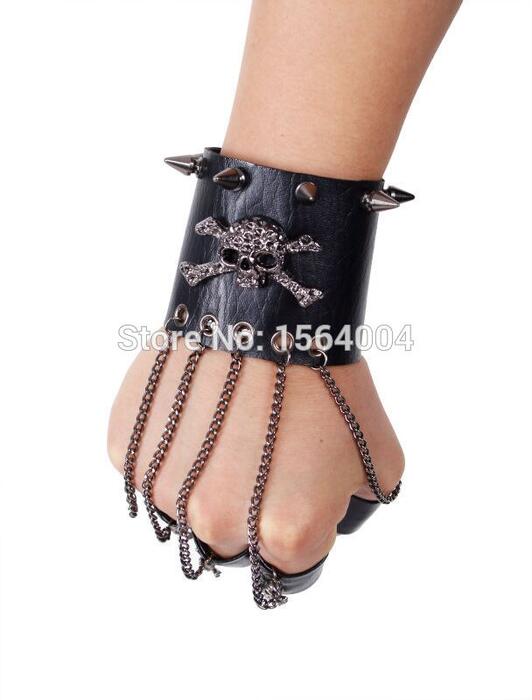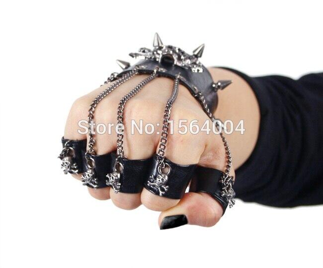 1 review for Punk Rave Skull Rock Style Gothic steasmpunk Men Bracelet Glove Rock Steam PU leather Skull spike cuffone glove S114