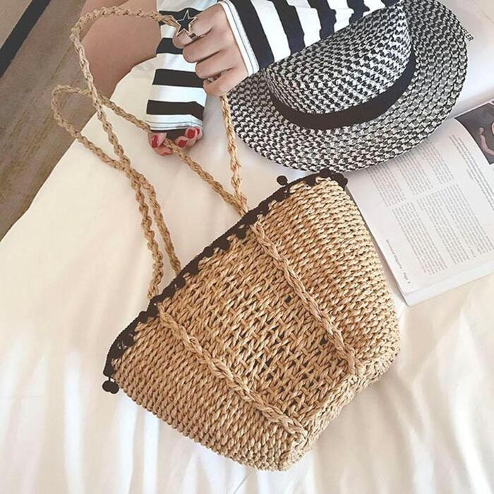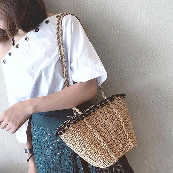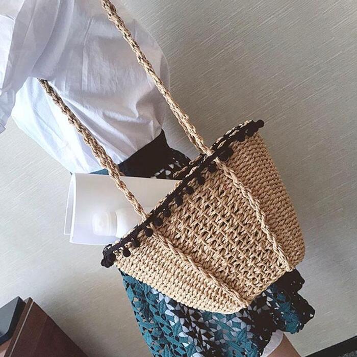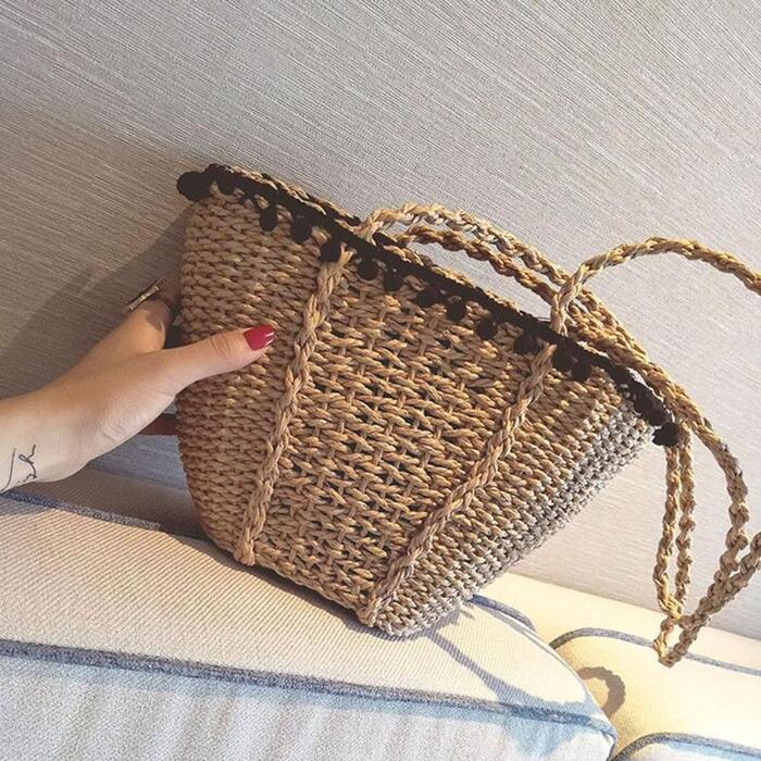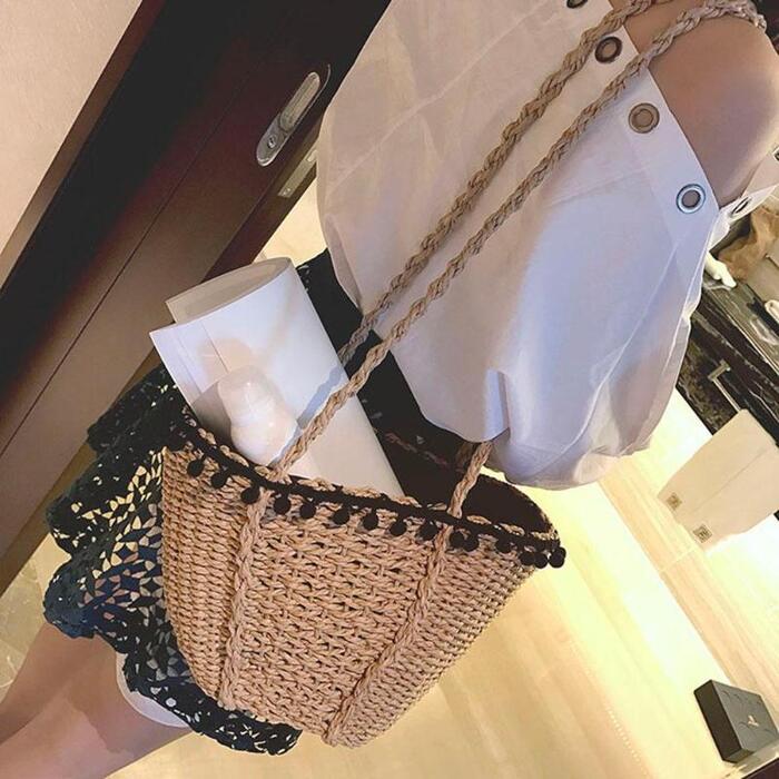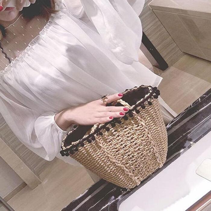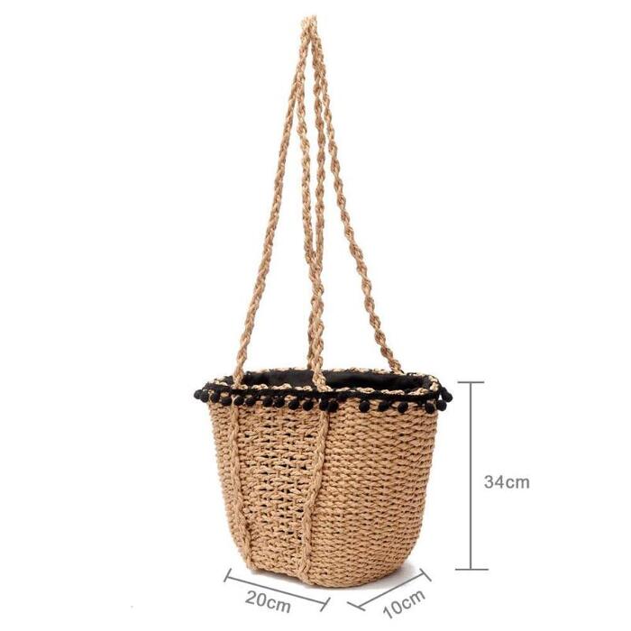 Retro Beach Handbags Women Straw Casual Drawstring Summer Basket Travel Shoulder Tote Bag Features: The fashion version of the type:concise but not simple, high-grade Straw material,extraordinary quality; Exquisite design: generous, simple fashion; Easy to carry: Breakthrough cumbersome,Handy convenient. Specifications: Material: Straw Size: 34 X 20 X 10cm/13.39 X 7.87 X 3.94″ Use: Handbag Style: As shown Notes: 1. Because the product is a pure handmade straw bag, there will be a difference in the straw material for each batch.There will be some small differences in color and design. Please understand and forgive us,Thank you! 2. Due to the different monitor and light effect, the actual color of the item might be slightly different from the color showed on the pictures. Thank you! 3. Please allow 1-3cm measuring deviation due to manual measurement. Packages: 1 X Handbag