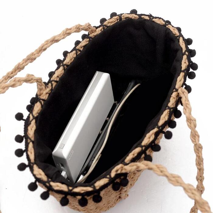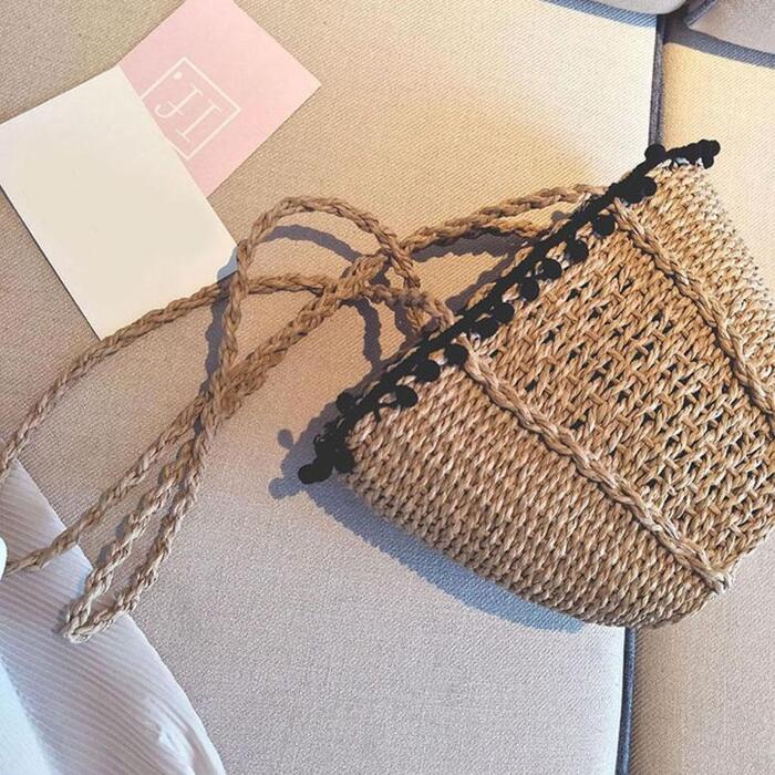 Drawstring Basket Bag Travel Tote Women Cute Handmade Straw Bags Summer Grass Handbags Bohemian Beach Bag for Women