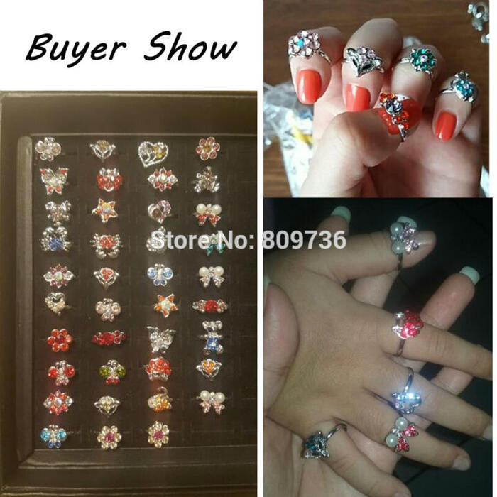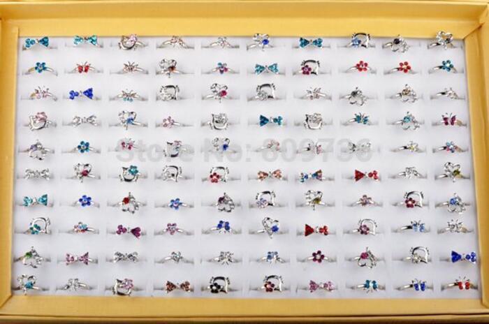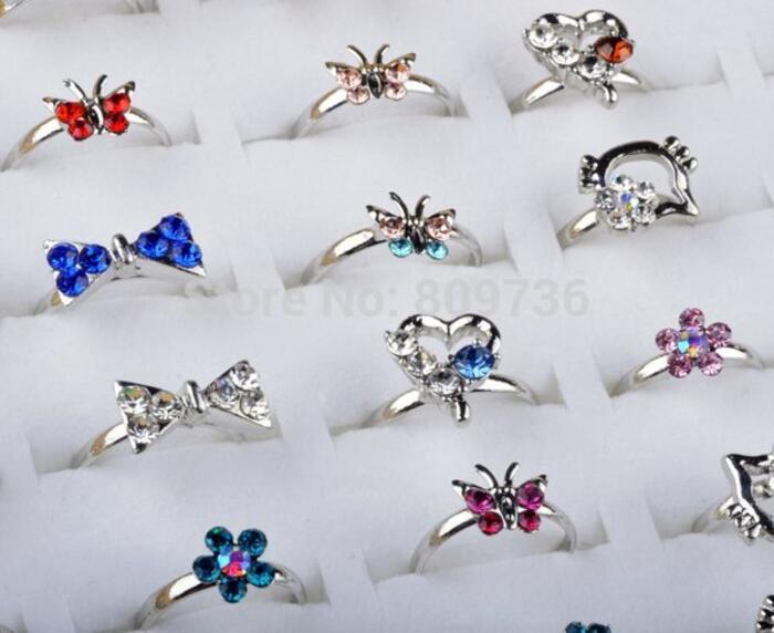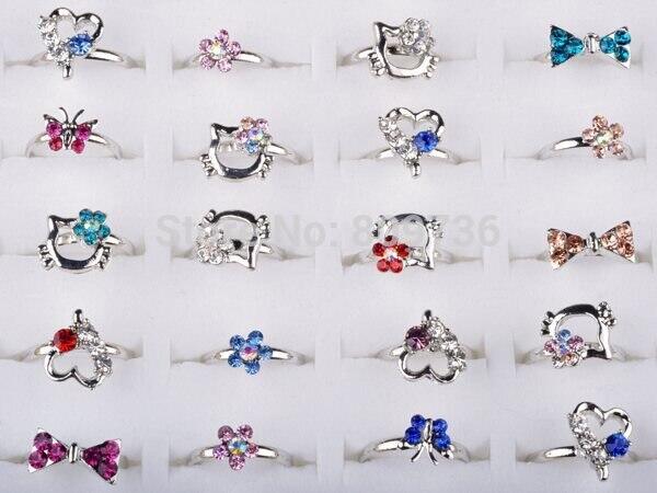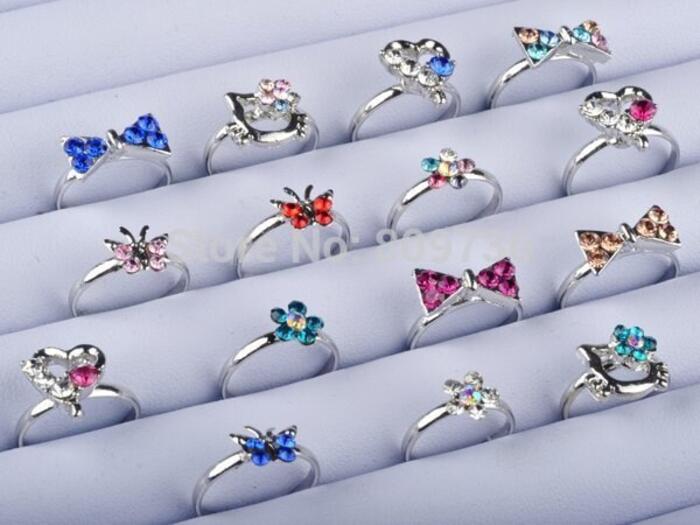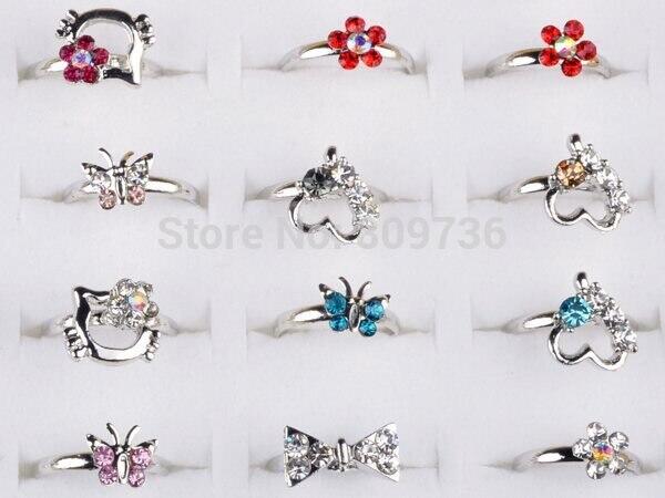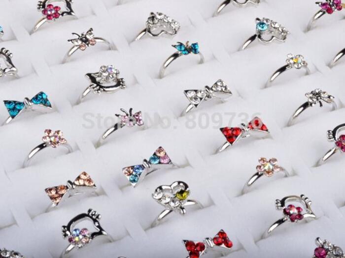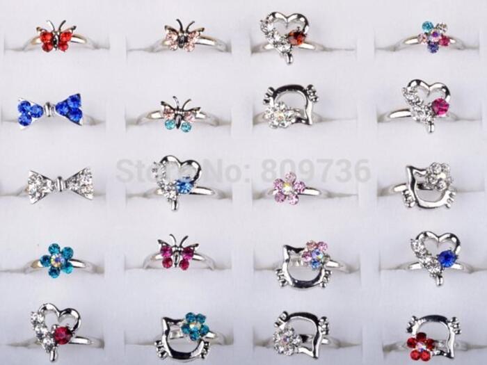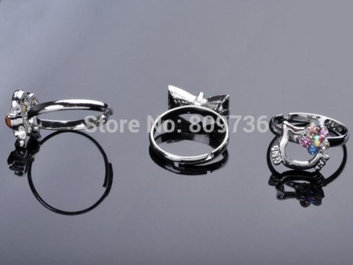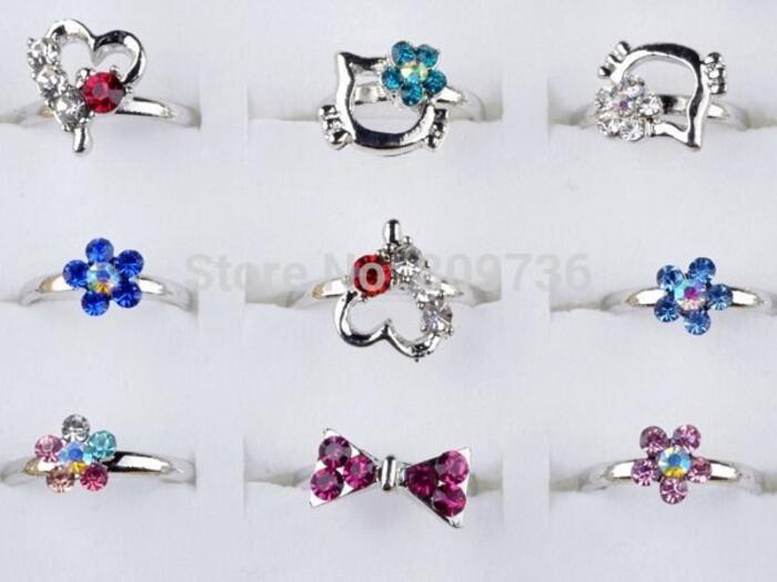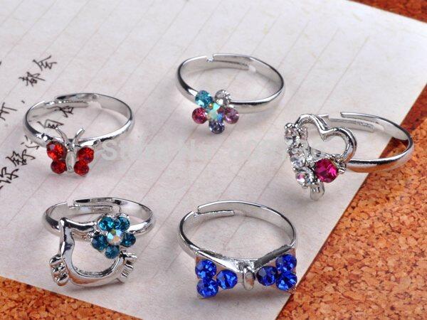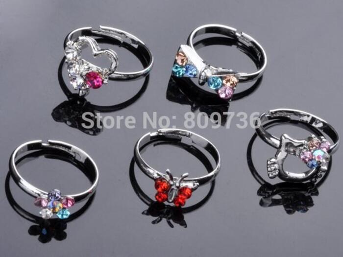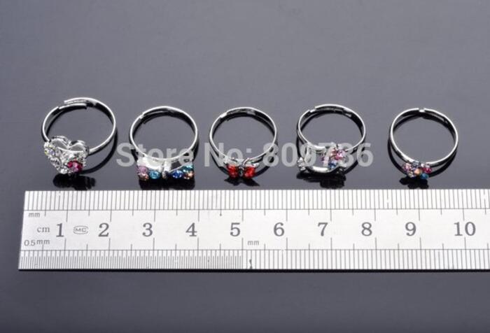 1.Type: Children Rings 2.Material: Crystal & metal alloy with Silver plated 3.Size: Adjustable 4.Quantity: 10pcs