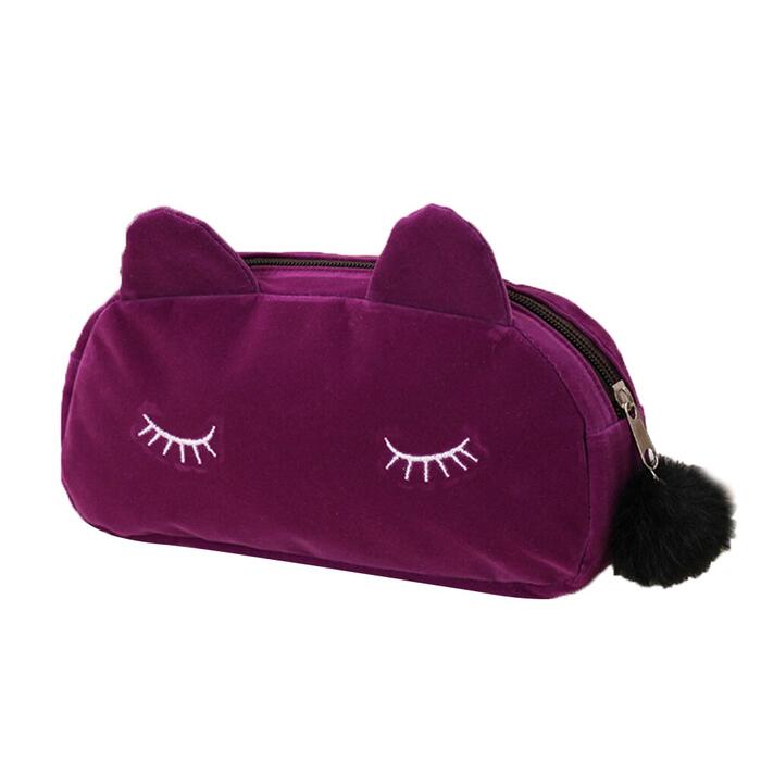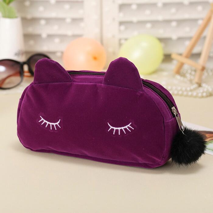 Description Are you looking forward a Practical and Portable hand bag? Our product can meet your need. With convenient zipper design, a perfect choice for putting your makeup, coins, cash, card, ect.Lovely cartoon cat design, this flannel storage case is pretty cute and practical. Perfect gift for you or your female friends Features – Color:Purple. – Material: Flocking – Size:23 x 12 x 5.5cm. -Sealed zipper design,can prevent your items from being lost. -Comfortable flocking material, generous design, soft and light. -Excellent appearance, can also be used as a storage package. -It can put into the set of cosmetics, can also be used as a stationery bag. -As multifunctional pencil case:can be used as Pencil Case,Coin Case,Cosmetic Bag and Storage Bag.