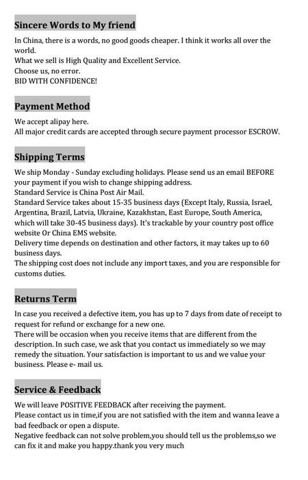 Note: Light shooting and different displays may cause the color of the item in the picture a little different from the real thing. The measurement allowed error is +/- 1-3cm.