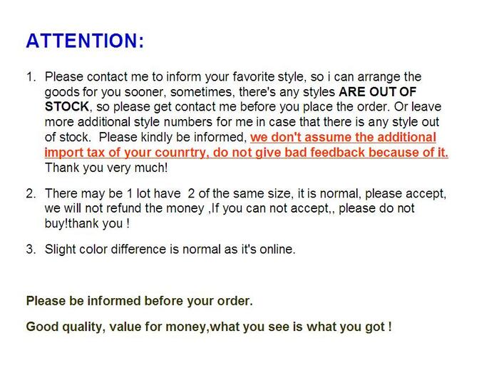 color: as picture,Slight color difference is normal as it s online. size: Just for reference only! MOQ 1lot=usually all pieces take together =(each size)*1