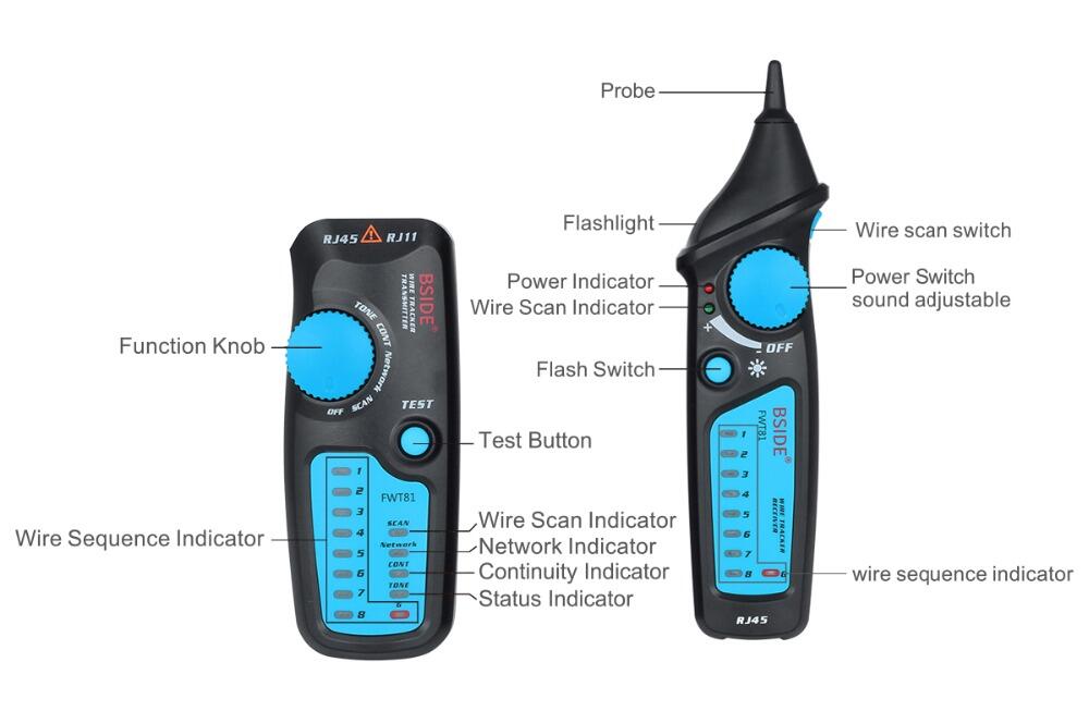 This instrument is a multi-functional handheld cable testing tool. Work perfect when RJ11 RJ45 cable is on power. It has a wide application with reinforced cable types and multiple functions. It is a necessary testing tool for telecommunication engineering, wiring engineering, and network maintenance person.