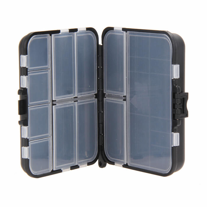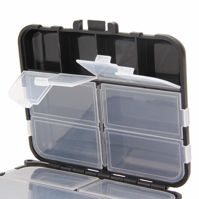 Item Specifics: Item Type: Fishing Lure Bait Tackle Box Container Case Size: Approx. 11.5*9*3.5cm/4.53"*3.54"*1.38" Color: Black Compartments: 26 Material: Plastic Quantity: 1pc Occasion: Fishing