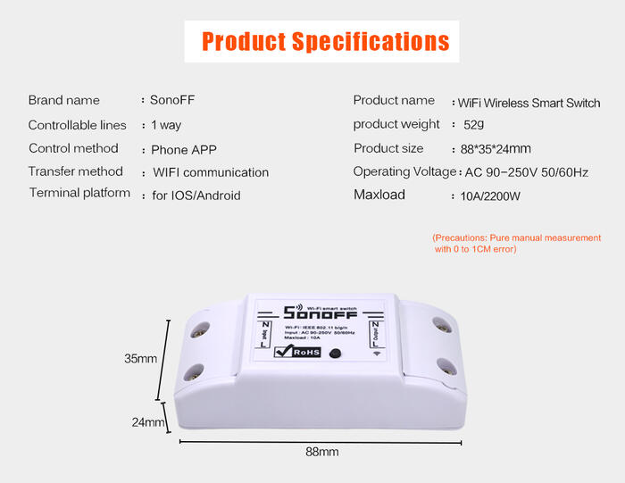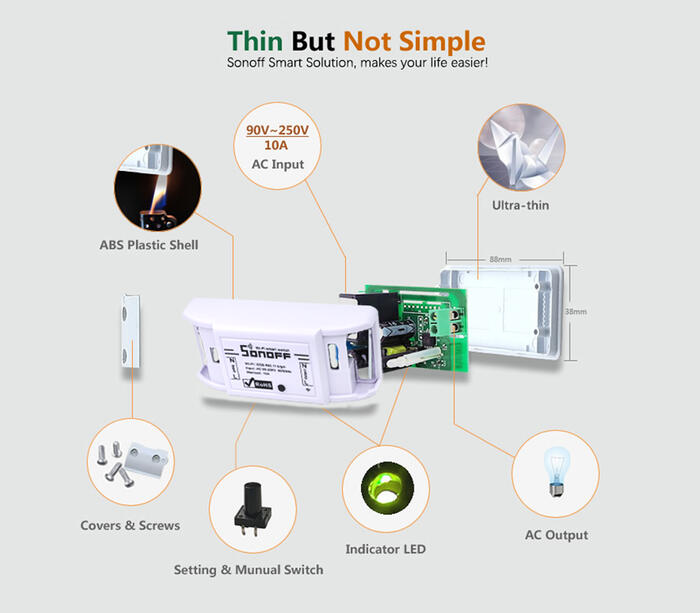 HomeConsumer ElectronicsSmart ElectronicsSmart Home AppliancesSONOFF Basic Smart Home Wifi Wireless Switch Remote Control Automation Relay Module for Apple Android Smartphones 10A 220V