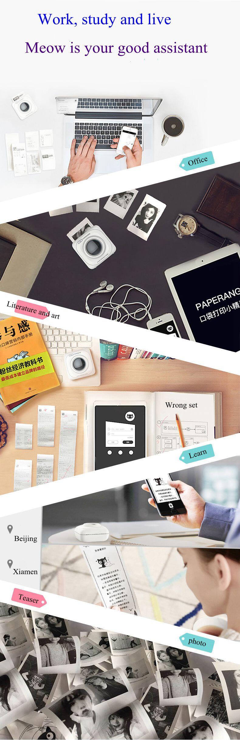 PAPERANG P1 Portable Bluetooth Paper Printer Print photos, photos for the thermal paper imaging, Bluetooth connectivity, through the phone paperang APP end of the cloud to connect to the remote printing, can help you better memorize, record, pass the message, stand shot, screenshots, users as long as the All content on the phone screen can be instantly printed.