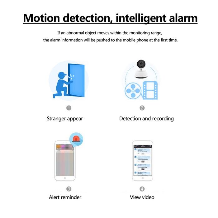 5. Motion detection, intelligent alarm. If an abnormal object moves within the monitoring range, the alarm information will be pushed to the mobile phone at the first time.
