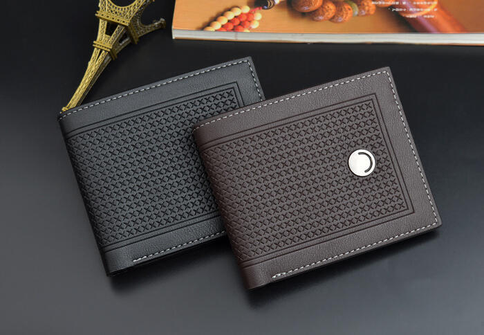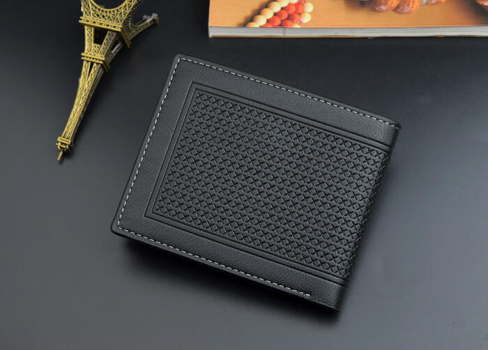 New Men’s Short Wallet Multi-card 3-fold Cross-section Business and Leisure Embossed Retro Soft Wallet for Youth