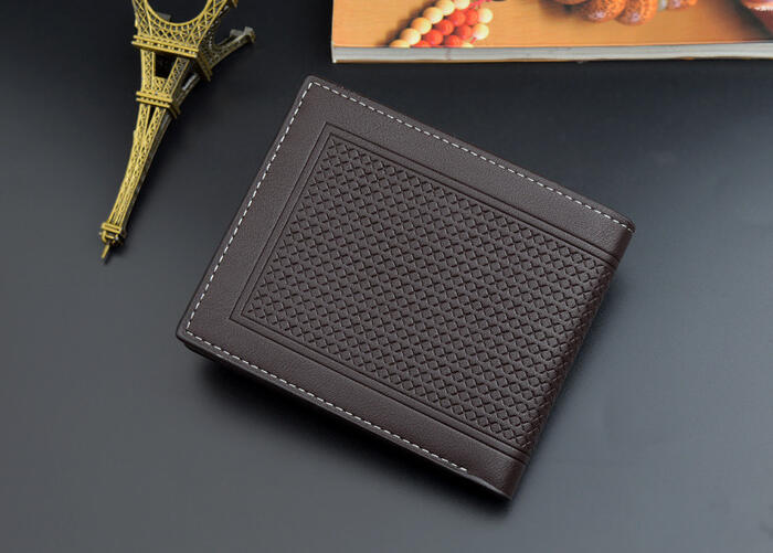 New Mens Short Wallet Multicard 3fold Crosssection Business and Leisure Embossed Retro Soft Wallet for Youth