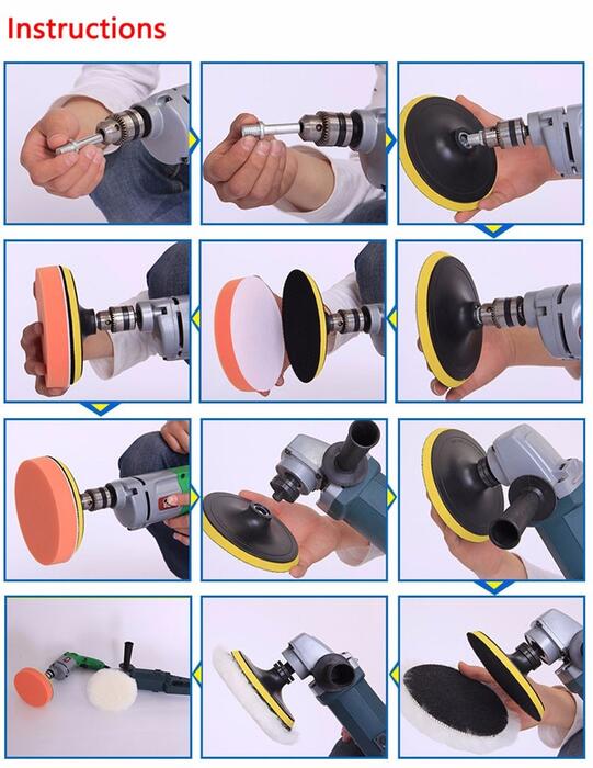 7pcs Gross Polishing Buffing Pad Kit for Auto Car Polishing Wheel Kit Buffer With Drill Adapter Hot Selling Features: 100% Brand new and high quality! Complete professional wool and foam pad buffing, polishing and finishing system Buffing pad kit with 5 pads, 1 woolen buffer,1 adhesive backer pad Rich and uniform,fine porosity,have super elastic,toughness and water absorb ability. High strength ability,good plasticity,sharp and wear-resisting,good self sharpening. With adhesive backing, you can change pads just in seconds. Used for all kinds of coat paints s waxing, polishing and sealing glaze, to clean and improve their lightness. Regular waxing and polishing set up a protective barrier against hostile attacks from the environment your furniture and vehicle s appearance will be protected for years to come. Specifications: Condition: brand new Material: Sponge; woolen Form: roundness Pads Dia: 8cm Package includes: 5 x Polishing pads 1 x Woolen buffer 1 x Adhesive backer pad with handle