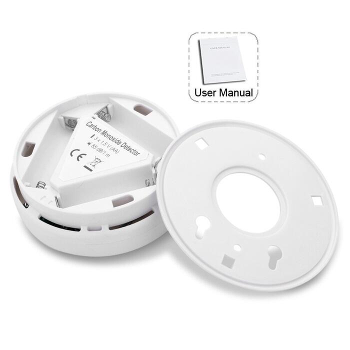 Standby Current <50uA Operation Ambient Condition 5~40degreeE, 20~90%R.H. Alarm Current:<70mA Color White Product Weight 88g / 3.1oz Package Size 10.5*10.5*4cm / 4.2*4.2*1.6in Gross Weight 120g / 4.23oz Introduction: LCD displayer with a blue back ground light. Loud 85 db alarm. Permanent carbon monoxide sensor. Powered by 3*1.5V AA batteries ( not included in package) The alarm sound pattern is four short alarm beeps.The red LED will flash whilte in alarm mode. One" chirp" every 30 seconds is an indication that the battery is low ( need replacement) ( green LED still flashes once every 30 seconds) or the unit is malfunctioning ( green LED is out). Alarm memory feature:If the unit ever alarms,pressing the button,green LED will flashes once every second for one minutes and the peak alarm level will indicate on the LCD. Test/Reset button to test the unit electronics and verifies proper unit operational and reset the unit during CO alarm. Green and red LED lights that indicate normal operation and alarm statues. 3 digits LCD displayer is optional."Err" on the LCD to indicate the unit is malfunctioning. Lb" on the LCD to indicate it low battery and need replacement. "999ppm"on the LCD to indicate CO level over 999ppm.If the CO leakage is less than 999ppm but over 30ppm.it would slow its actual concentration. Blue back light will be lighted when pressing the test button or alarming. The unit will sound "chirp" and red LED flashes once as power up,with "888" displays on the LCD for 2 seconds. Then pressing the test button,the unit will sound 4 beeps every 5 seconds twice with red LED flashes . During the self test mode,"000" displays on the LCD for 3 minites and then enter in normal operation mode. Power saving feature:The alarm sound pattern is 4 beeps every 5 seconds for the first 4 minutes. in 4 minutes, it will chnage to 4 beeps every minutes to save battery. Packaging Details Unit Type: piece Package Weight: 0.1kg (0.22lb.) Package Size: 10cm x 10cm x 10cm (3.94in x 3.94in x 3.94in)