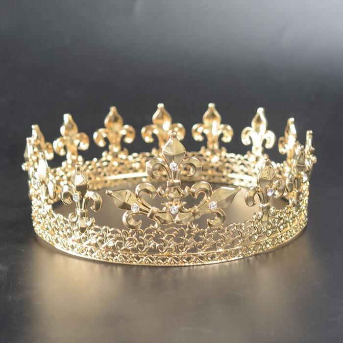 HomeJewelry WatchesWedding EngagementWedding Hair JewelrySnuoy Big King Crown Gold Retro Court Crown For Men Wedding Hair Accessories Vintage Pageant Diadem Fashion Style Drop Shipping