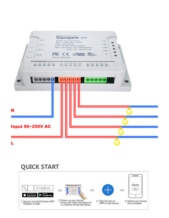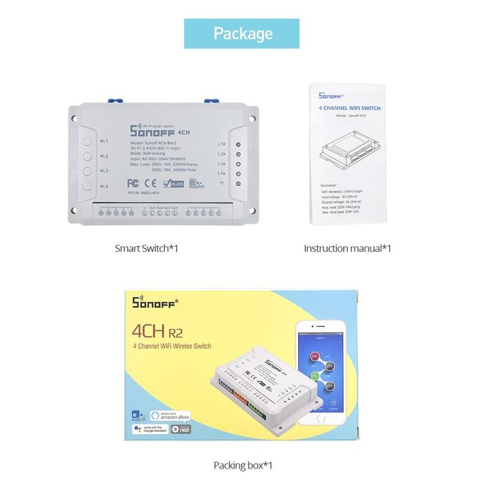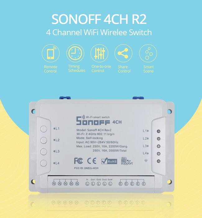 HomeConsumer ElectronicsSmart ElectronicsSmart Home AppliancesSonoff 4CH R2 Wireless Multichannel WIFI Switch Independent Remote Control Smart House Home Automation Module Controller 220V