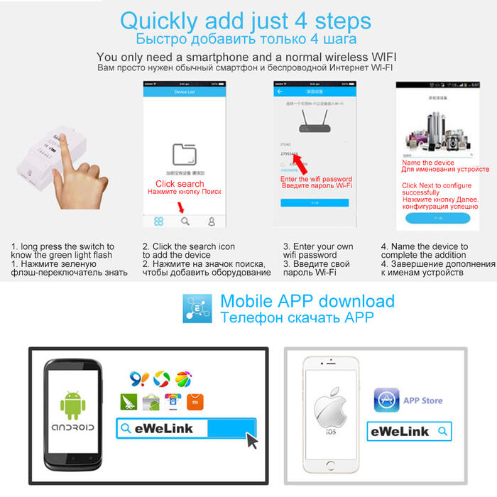 Through the mobile application eWeLink, remote home control becomes a reality.