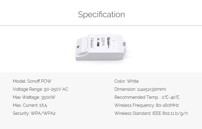Sonoff Pow Smart Wifi Switch Controller With Real Time Power Consumption Measurement 15A/3500w Smart Home Device Via Android IOS